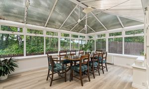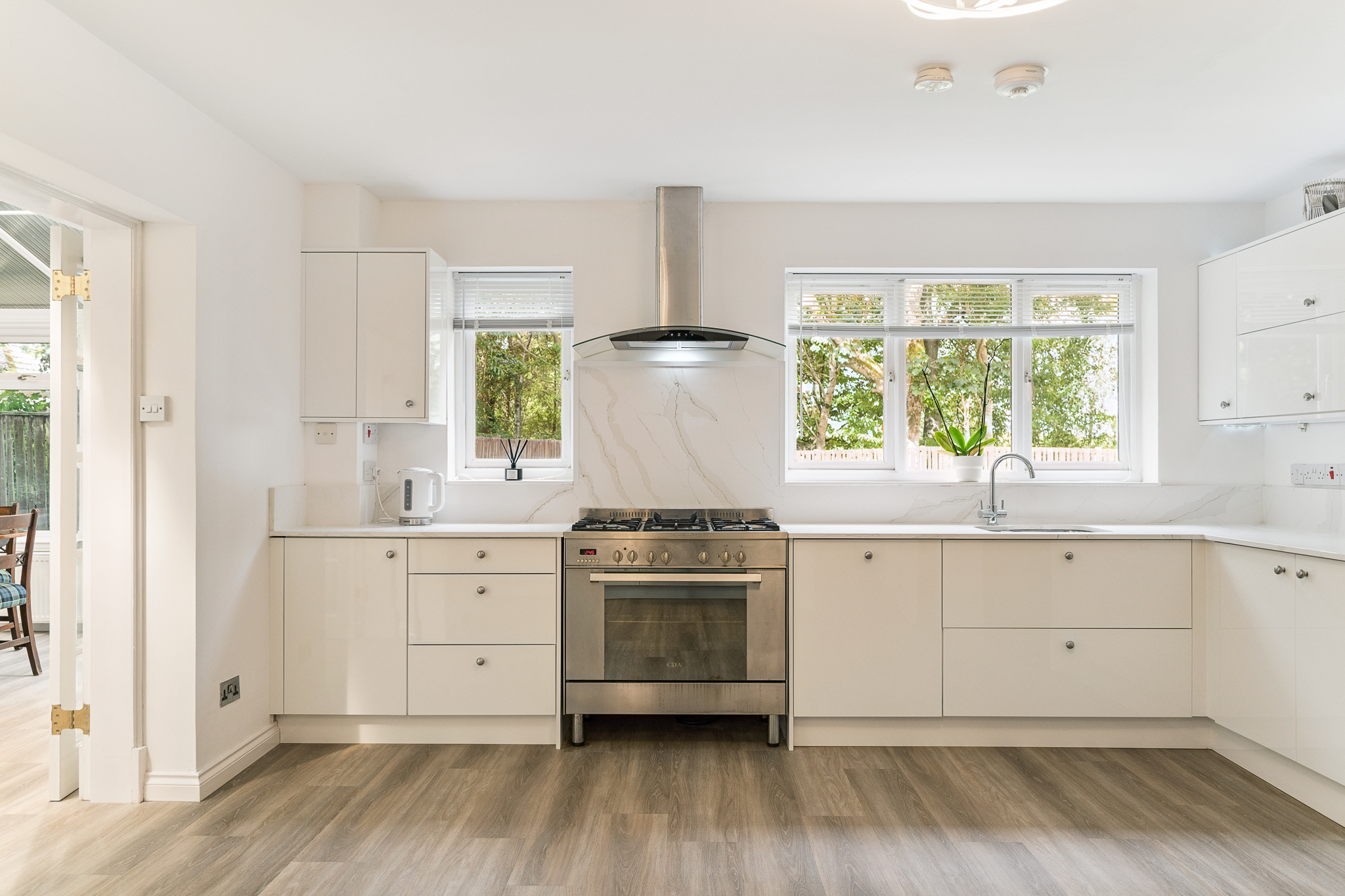 Outside, the rear garden elevates this home to another level entirely, a fully private, expansive plot bordered by mature woodland, offering a tranquil, secluded backdrop rarely found in such a desirable residential location. Whether imagining summer barbecues, children playing on the lawn, or quiet morning coffees listening to birdsong, this outdoor space is both peaceful and impressive in scale.