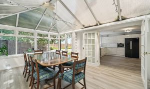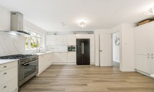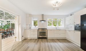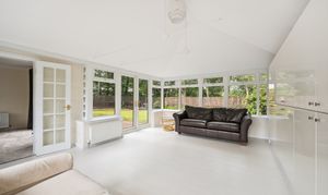 Step inside and you’re welcomed into a broad, light-filled hallway that sets a warm and elegant tone for the tour ahead. To the right, the main reception room stretches out in front of you, a beautifully proportioned space perfect for both sophisticated entertaining and relaxed evenings. Just beyond, the family room commands its own special moment, a wonderfully inviting space with generous dimensions and dual-aspect light, the perfect hub for cosy movie nights, gatherings with friends or simply opening the doors out to the garden on a summer afternoon.