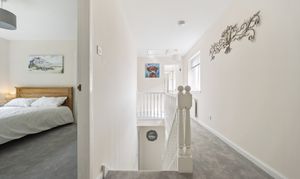 Ascending the staircase, the upper level continues to impress with a beautifully open landing leading to four fantastic bedrooms. The principal suite is a genuine sanctuary, offering exceptional space, extensive fitted storage and a pristine en-suite, creating a luxurious retreat at the end of each day. Bedrooms two, three and four are all generously sized, bright and thoughtfully positioned, making this level ideal for families who value comfort, privacy and flexibility. The modern family bathroom completes the upper floor with contemporary finishes and a calm, inviting feel.