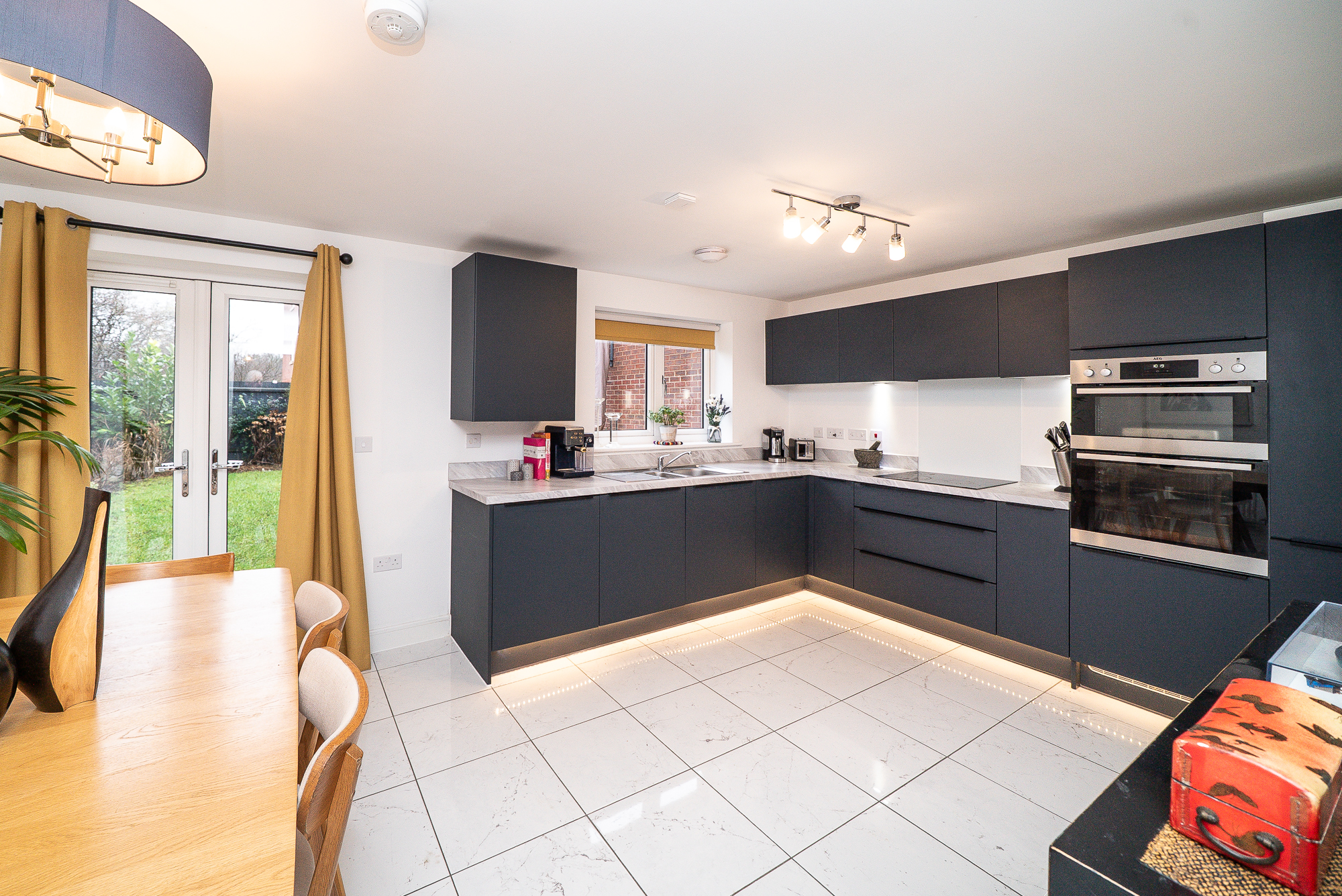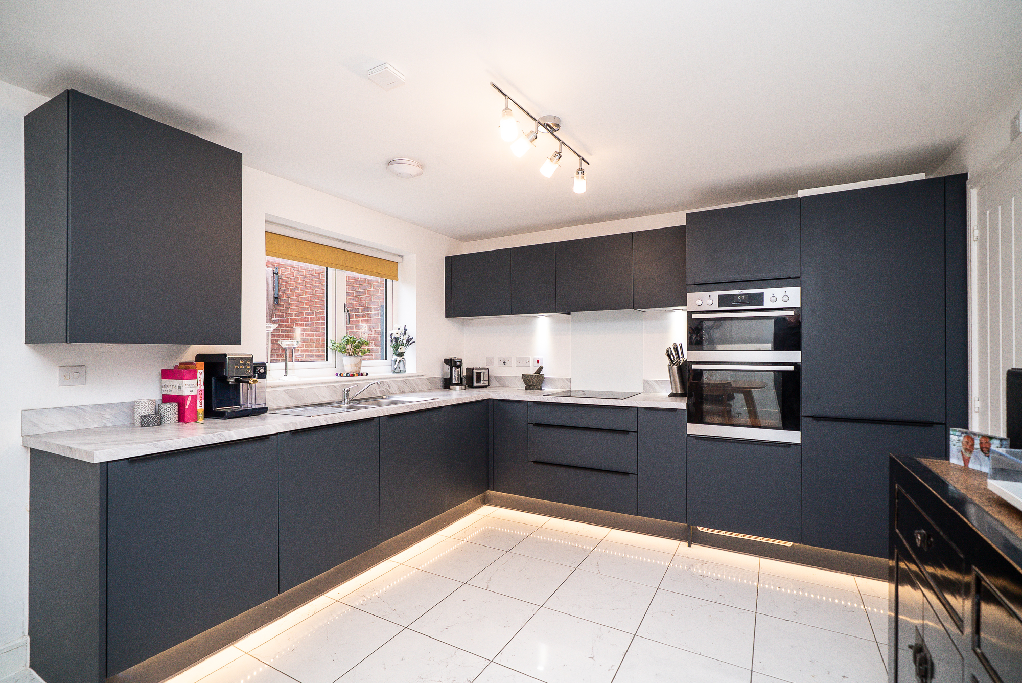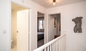 Upstairs, the primary bedroom is a true retreat, complete with its own ensuite shower room for privacy and comfort. Three further well-proportioned bedrooms provide ample space for family members or guests, and a contemporary family bathroom serves the additional bedrooms, featuring quality fixtures and a stylish finish. The property benefits from a garage and driveway parking for up to three cars, with three additional visitor bays available, making it ideal for households with multiple vehicles or for those who frequently host guests. £22,000 of extras were added when the property was purchased.