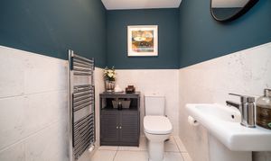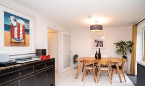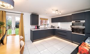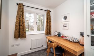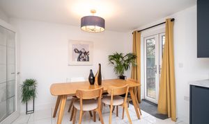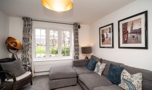Upon entering, you are welcomed by a hallway leading to a generous living room, which offers attractive views of the nearby park, providing a quiet outlook and a wonderful space for relaxation or entertaining guests. The modern kitchen and diner, thoughtfully designed for both functionality and style with AEG appliances, features direct access to the garden, ensuring a seamless flow for indoor and outdoor dining or gatherings. A practical utility room is conveniently positioned off the kitchen, offering additional storage and laundry facilities, while a downstairs WC enhances the convenience for residents and visitors alike.