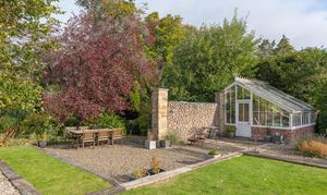 A long, gated drive curves through established planting to ample gravel parking as well as a detached double garage and large shed with a timber store beyond. The grounds are a notable feature, level lawns edged by mature trees and clipped hedging, with orchard planting and espaliered lines adding structure. A south facing terrace sits close to the house for coffee and summer dining, while a second seating area is tucked beside a striking log stack wall for sheltered evenings. A period greenhouse anchors the productive corner with beds for herbs and vegetables, and the wider garden opens to broad green swathes that hold the light through the day. The whole reads as a coherent, beautifully kept setting, private and green, yet comfortably placed for Hexham’s schools, town amenities, rail and road links.