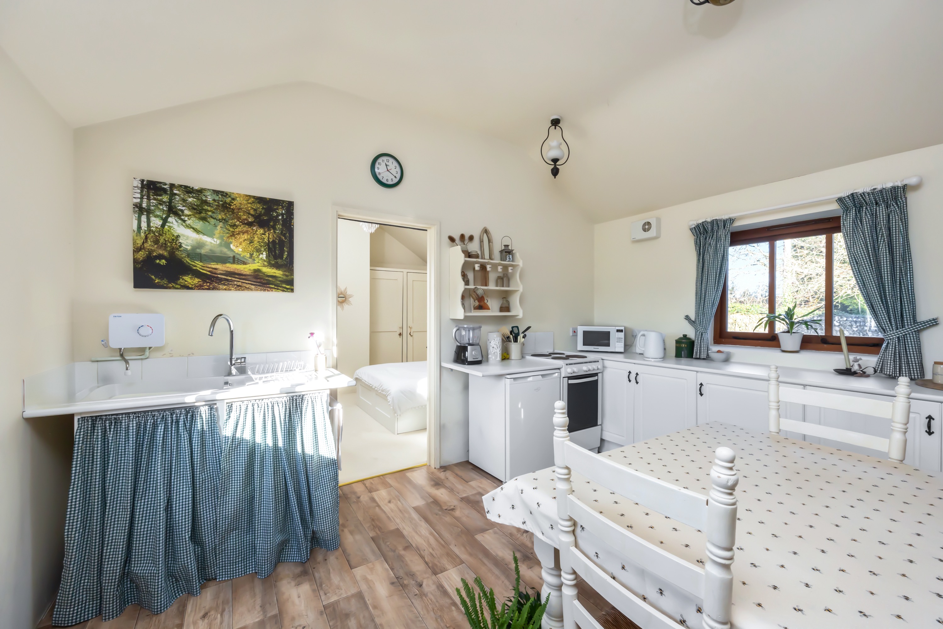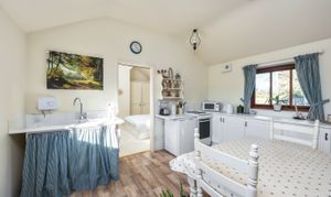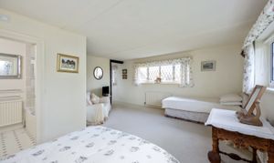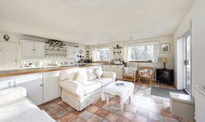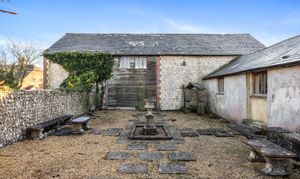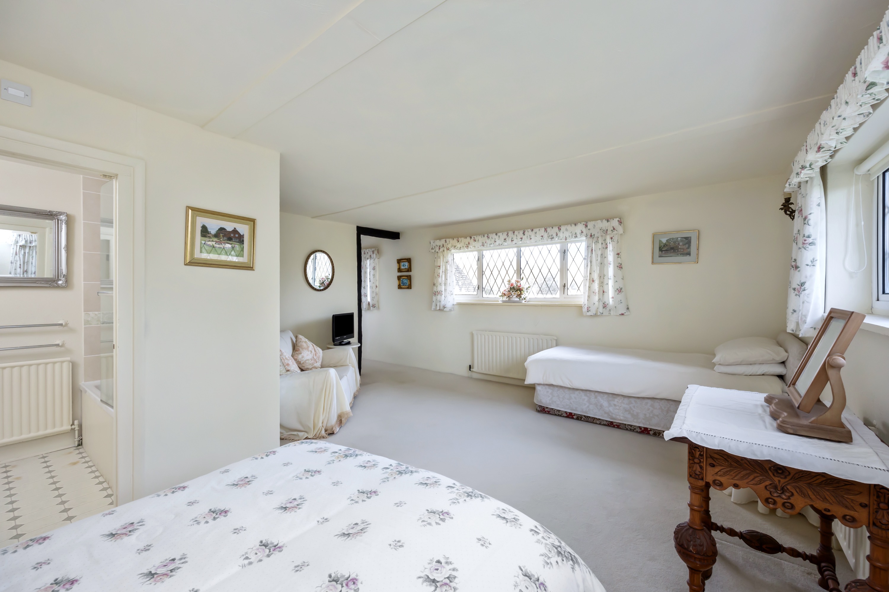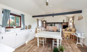 Detached flint barn/garage and 1 bedroom annexe: The flint barn which houses the oil tank is currently accessed via 2 large wooden doors. To one side there is a garage with stairs to a first floor room. The one bedroom annexe comprises a kitchen/dining/family room with a bedroom and an ensuite shower room. To the eastern side there is a courtyard garden and the northern side there is a further courtyard garden enclosed by walls.
