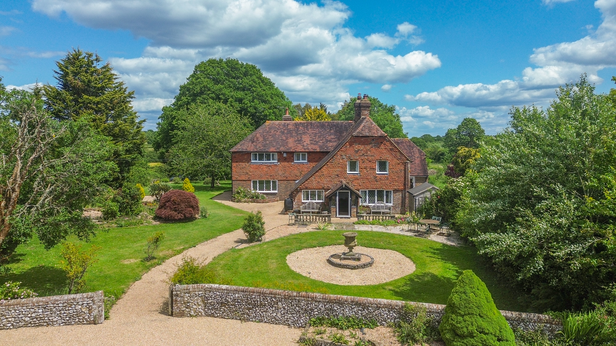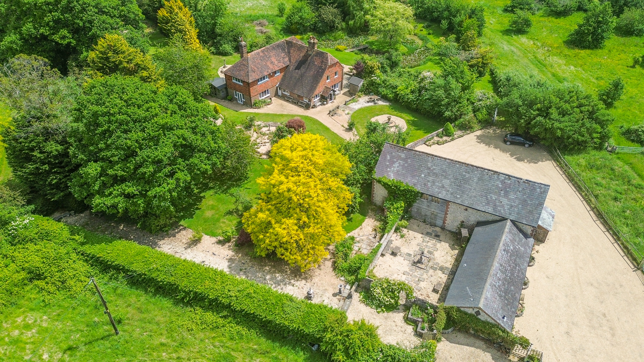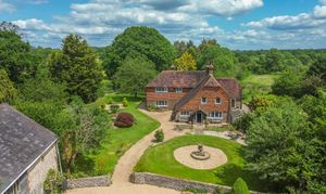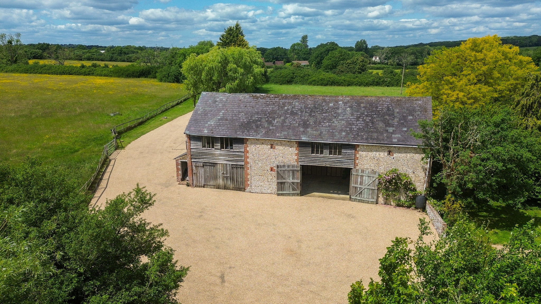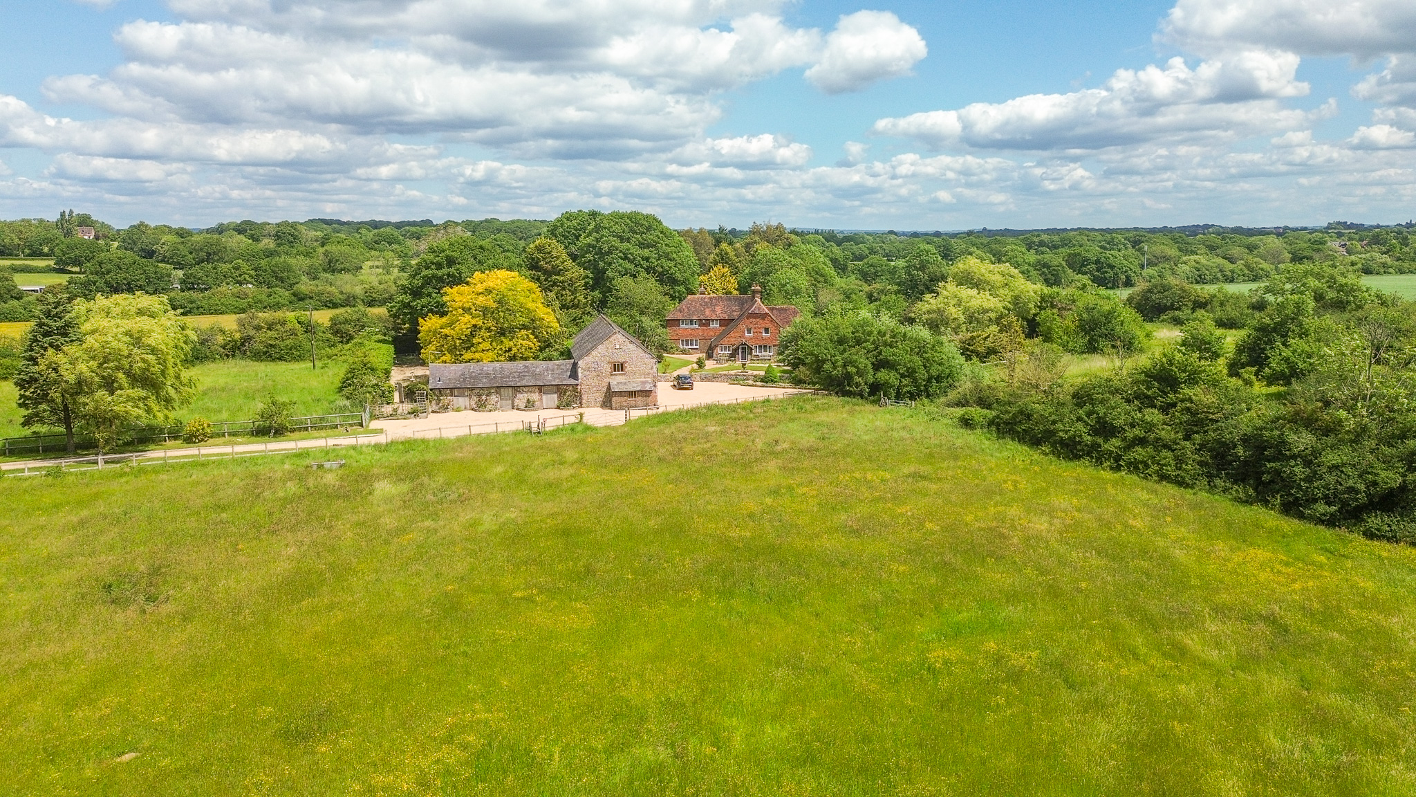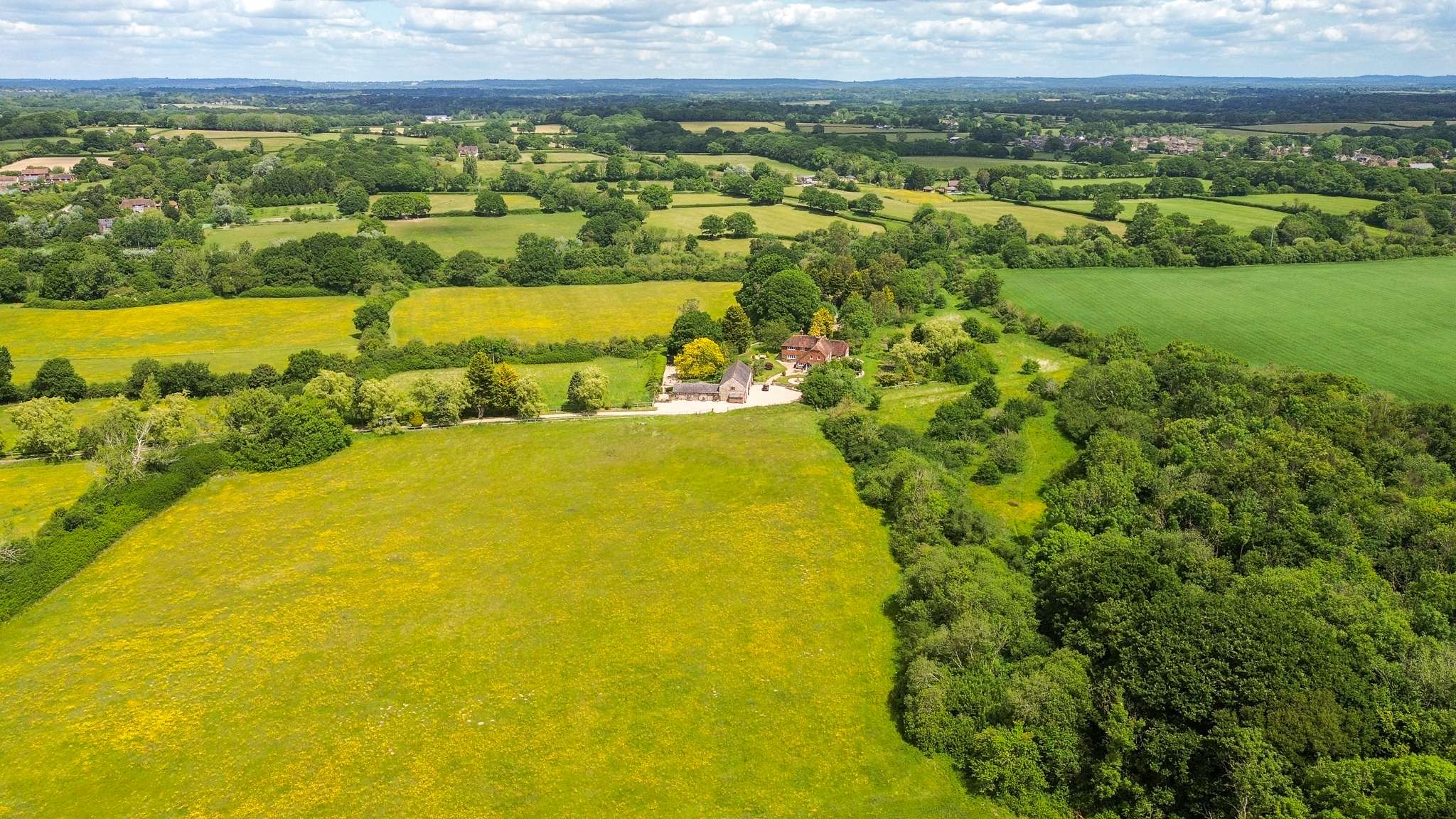 A 5 bedroom Grade II listed former hall house coming to the market for the first time since 1966 with numerous period features to include impressive Inglenook fireplaces. The oldest part dates from the 15th century with subsequent additions in the 1960’s and 1970’s. Situated at the end of an 250 m private tree lined drive and surrounded by it’s own grounds extending to just over 25 acres to include a 15 acre paddock with stunning views to the South Downs. A flint barn provides development opportunity S.T.P.P with a garage to one side and a 1 bedroom ground floor annexe.