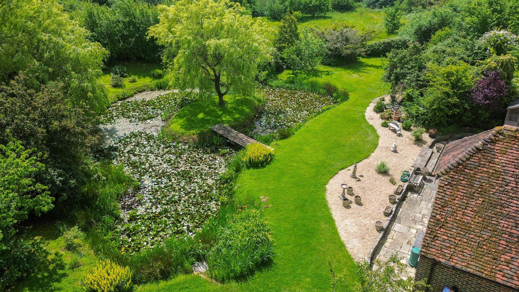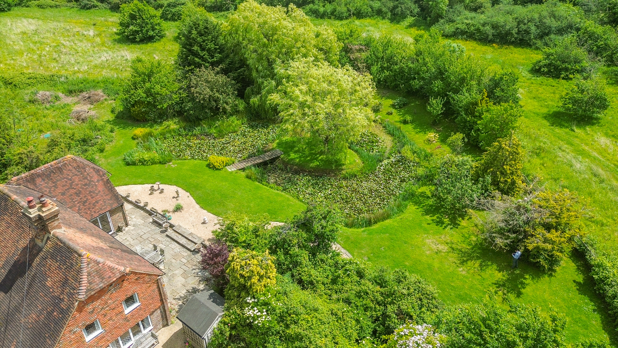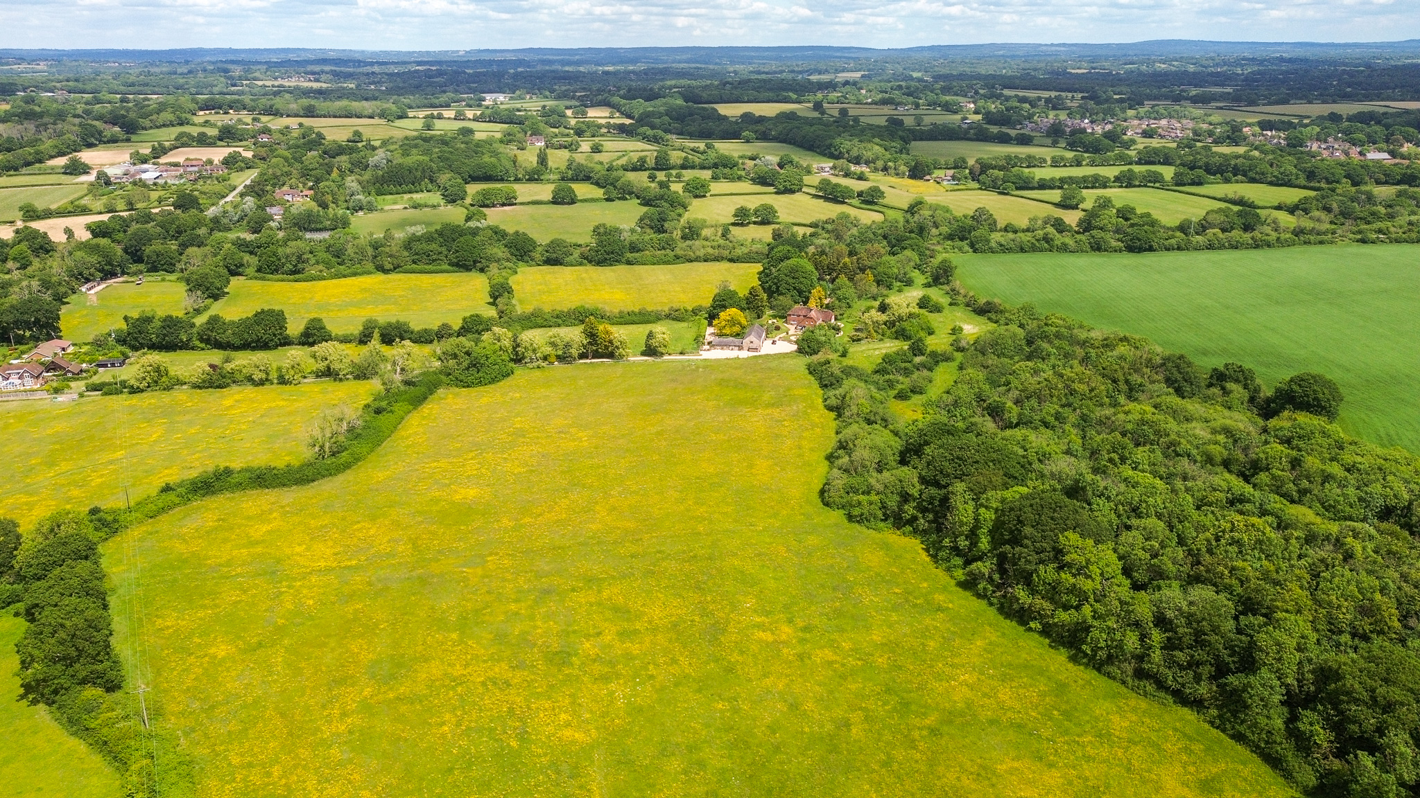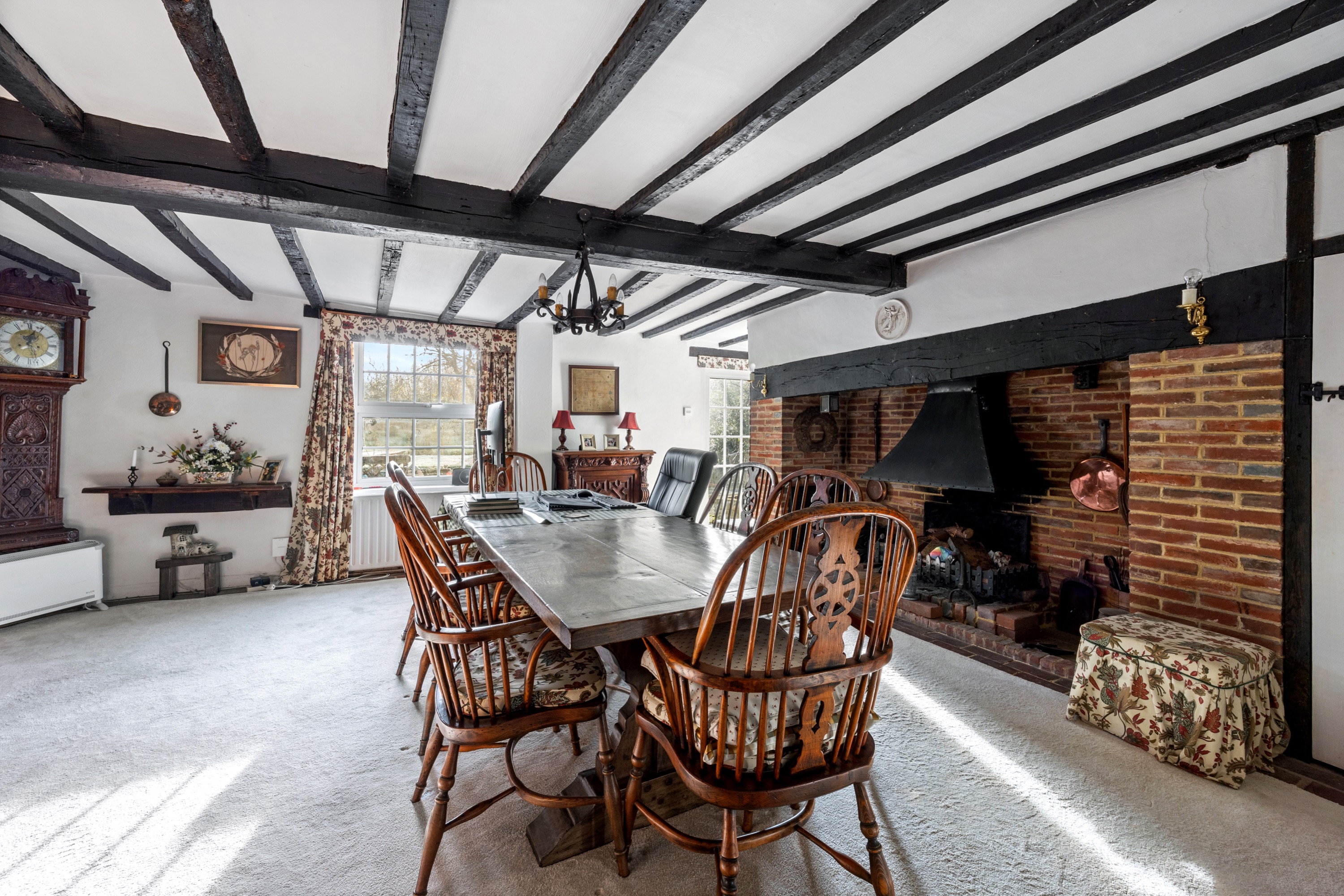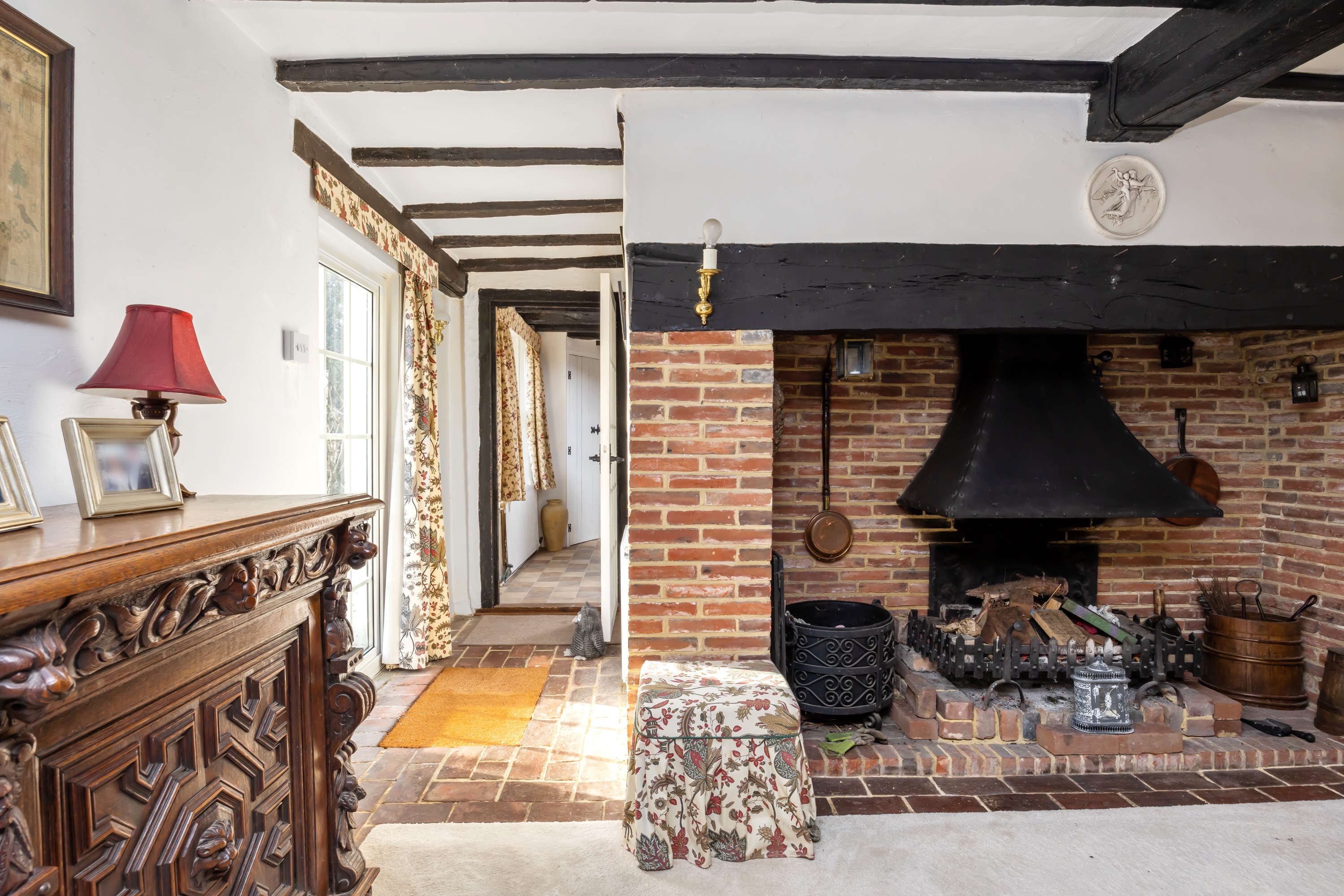 A 5 bedroom Grade II listed former hall house coming to the market for the first time since 1966 with numerous period features to include impressive Inglenook fireplaces. The oldest part dates from the 15th century with subsequent additions in the 1960’s and 1970’s. Situated at the end of an 250 m private tree lined drive and surrounded by it’s own grounds extending to just over 25 acres to include a 15 acre paddock with stunning views to the South Downs. A flint barn provides development opportunity S.T.P.P with a garage to one side and a 1 bedroom ground floor annexe.