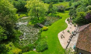 The gardens surround the house on all sides. To the front there is gated access to an area of lawn, pebble stones and a rockery with plants and ornamental trees. A pebble stone pathway leads to a large expanse of garden laid to lawn interspersed by trees and shrubs. Beyond this there is a former tennis court bordered by woodland. Summerhouse. To the eastern flank a generous terrace provides an ideal secluded entertaining area with steps to a further lawn with an attractive pond. Bridge to an island with willow tree.