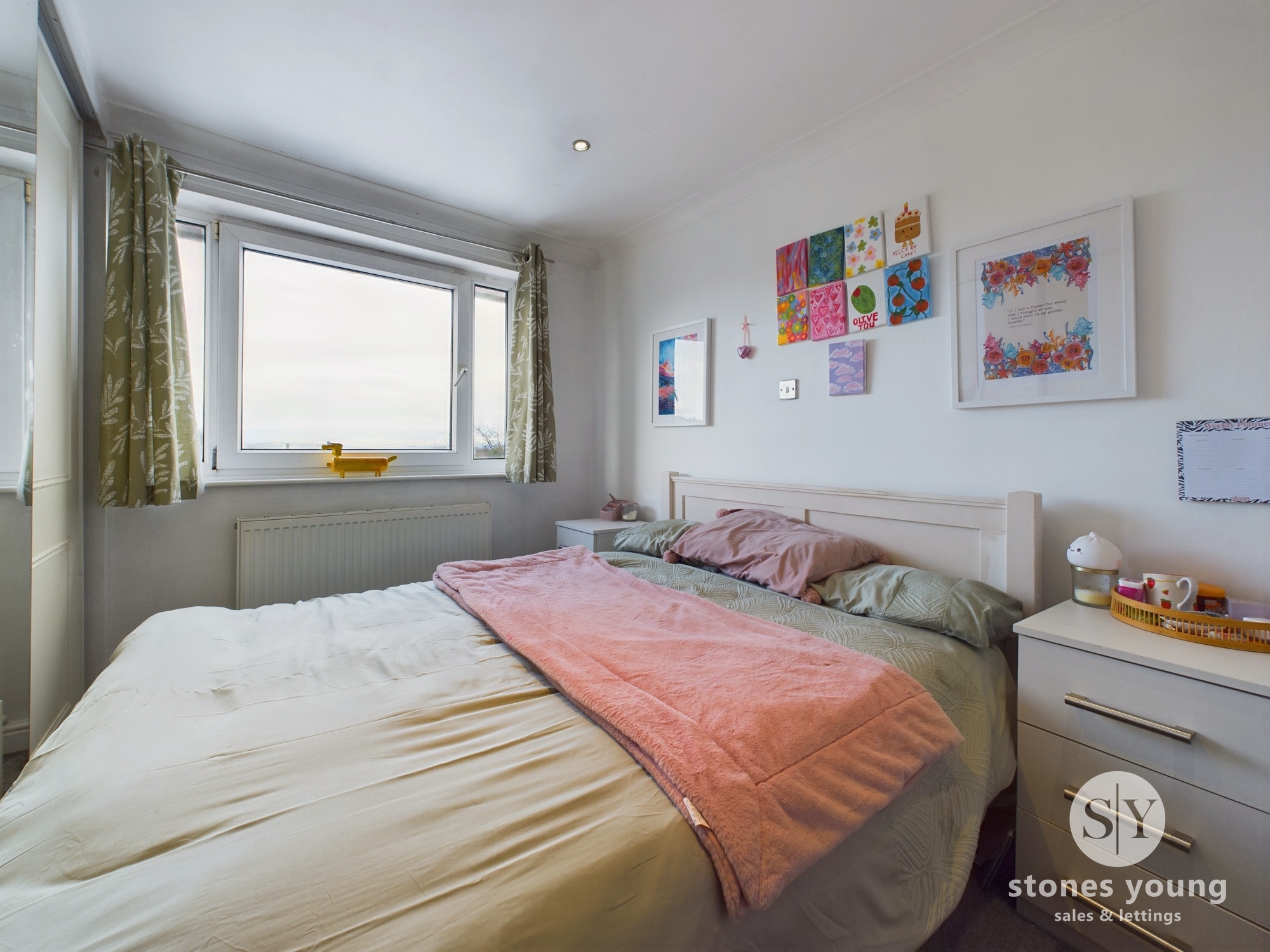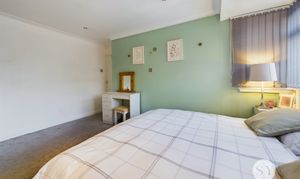 Double bedroom with carpet flooring, fitted wardrobes, double glazed uPVC window, panel radiator.