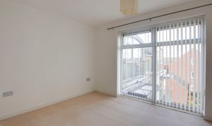 Window to front, sliding door to balcony and wood flooring. Radiator, telephone point and TV aerial.