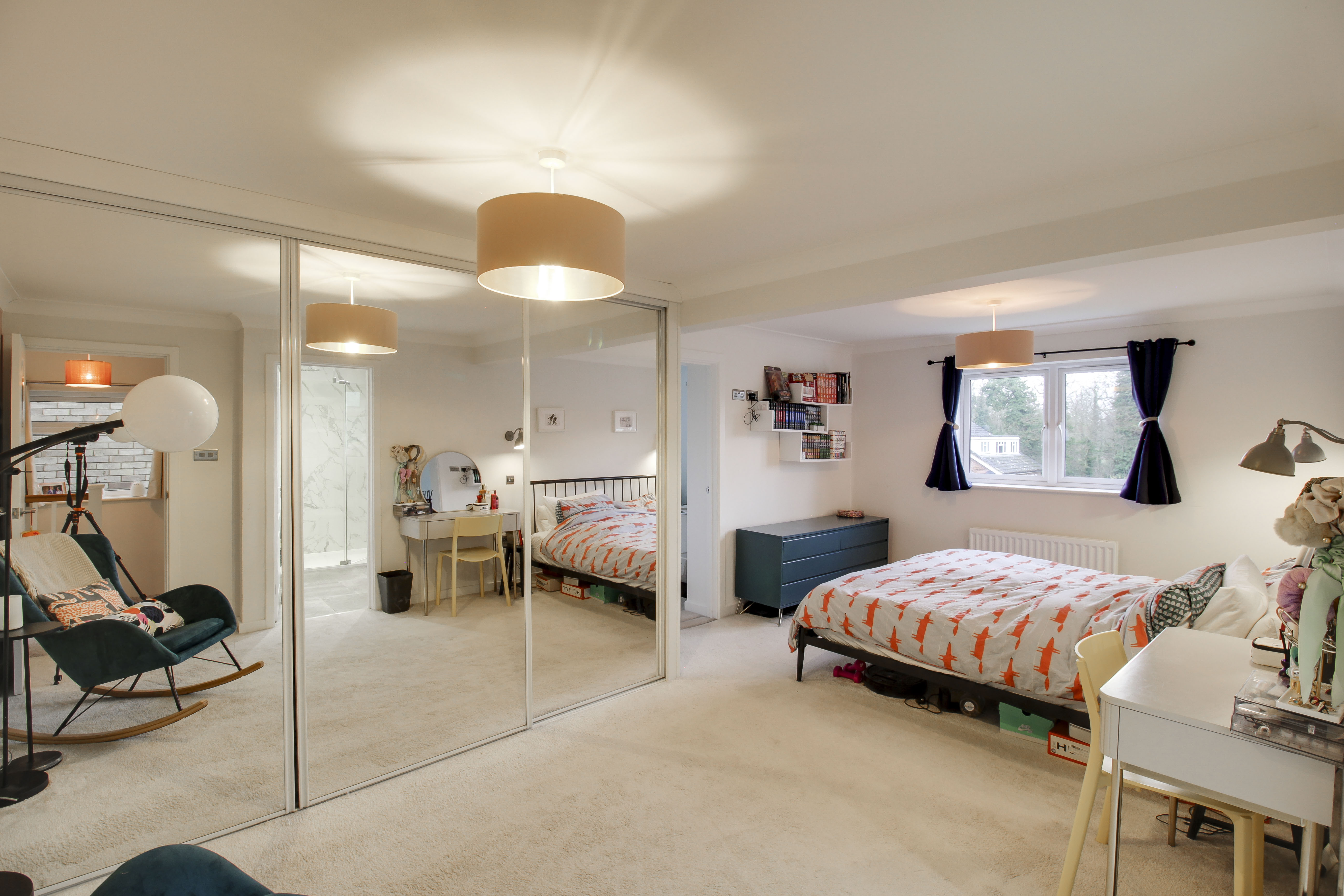 UPVC window to rear. Large built in wardrobes with mirrored sliding doors. Doors to en-suite and study. Radiator.