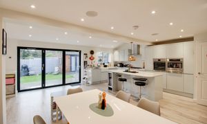 At the heart of the home is an impressive 29ft open-plan kitchen, dining and family room — perfect for modern family living and entertaining. The property also benefits from a separate study and a garden office, providing excellent work-from-home options.