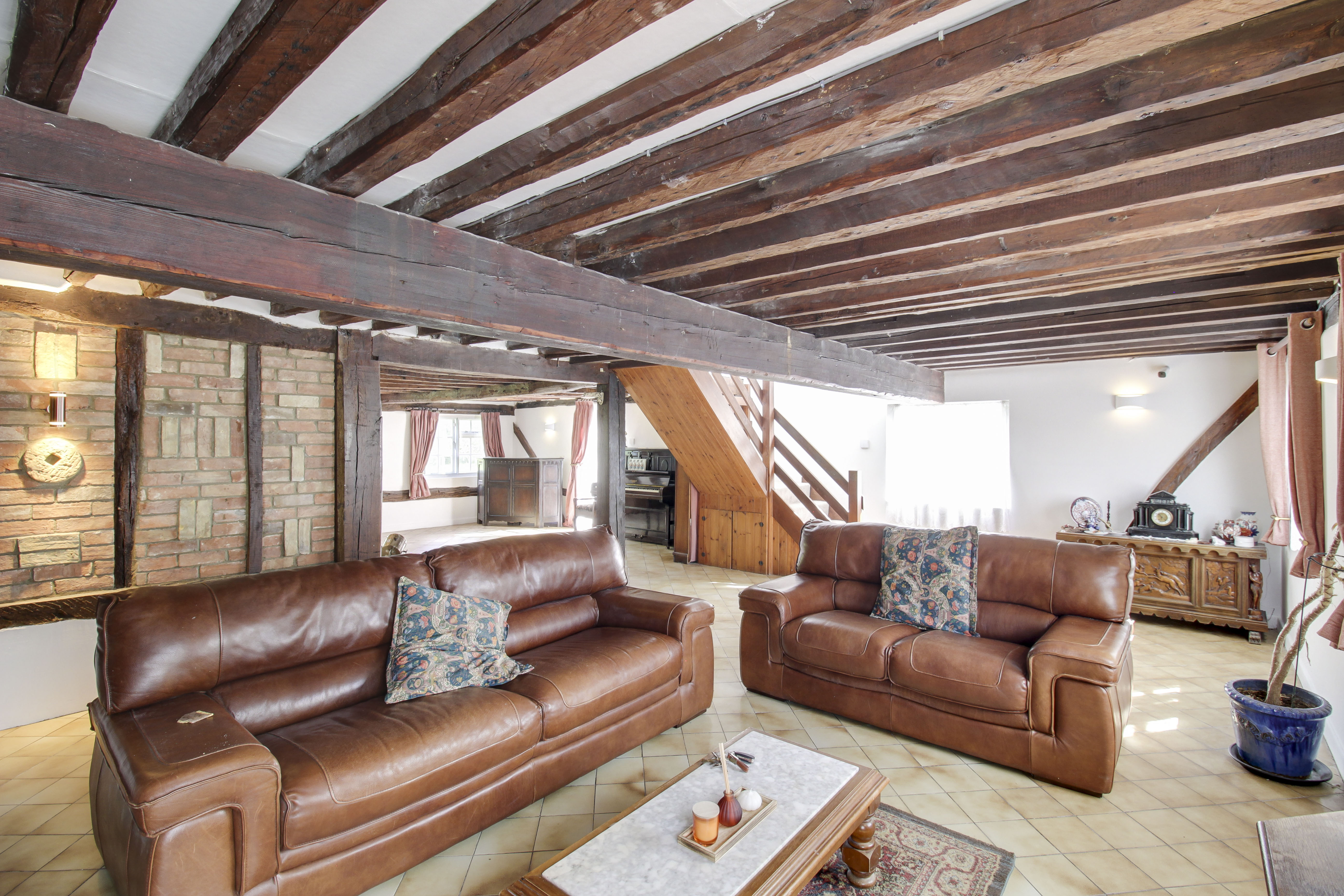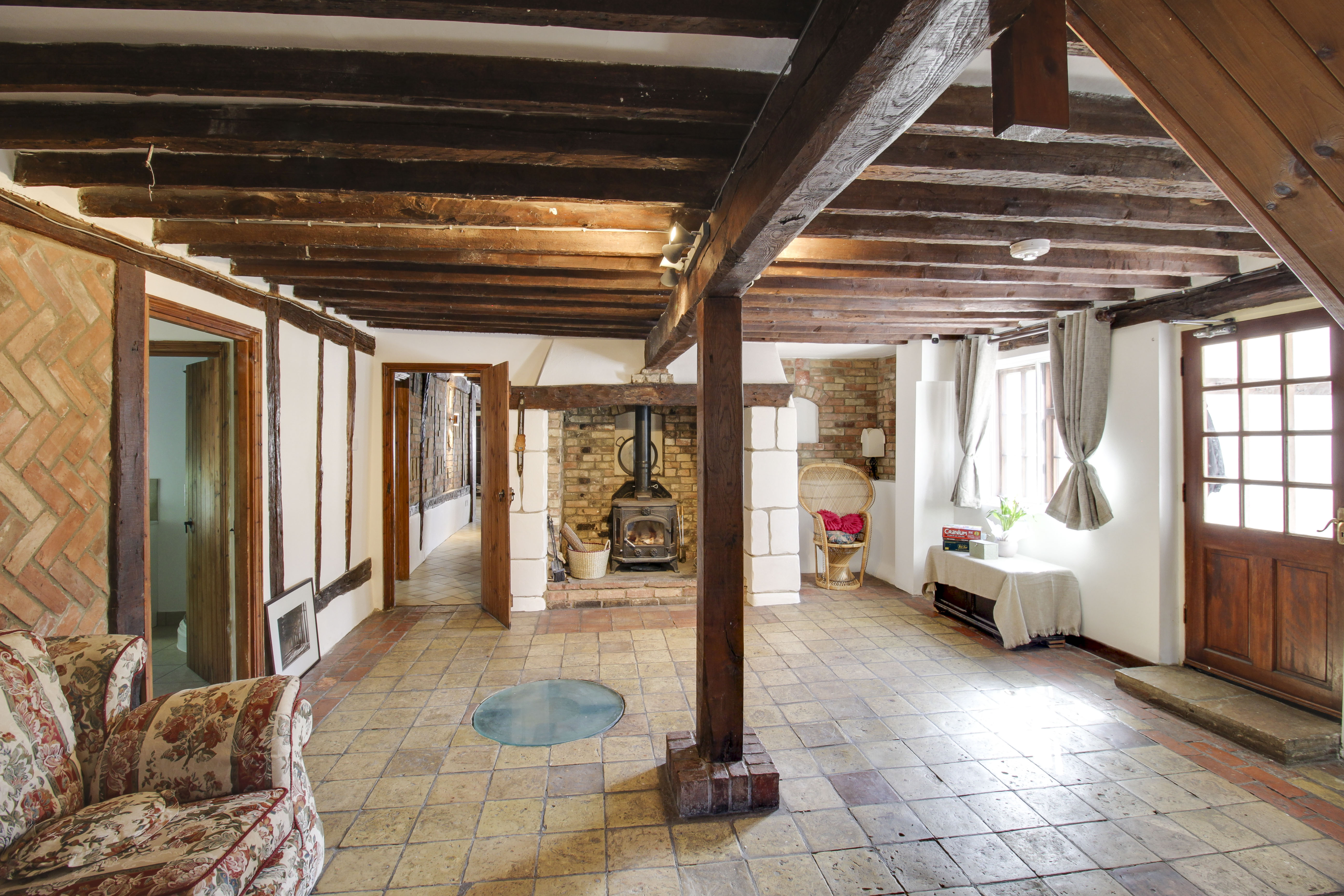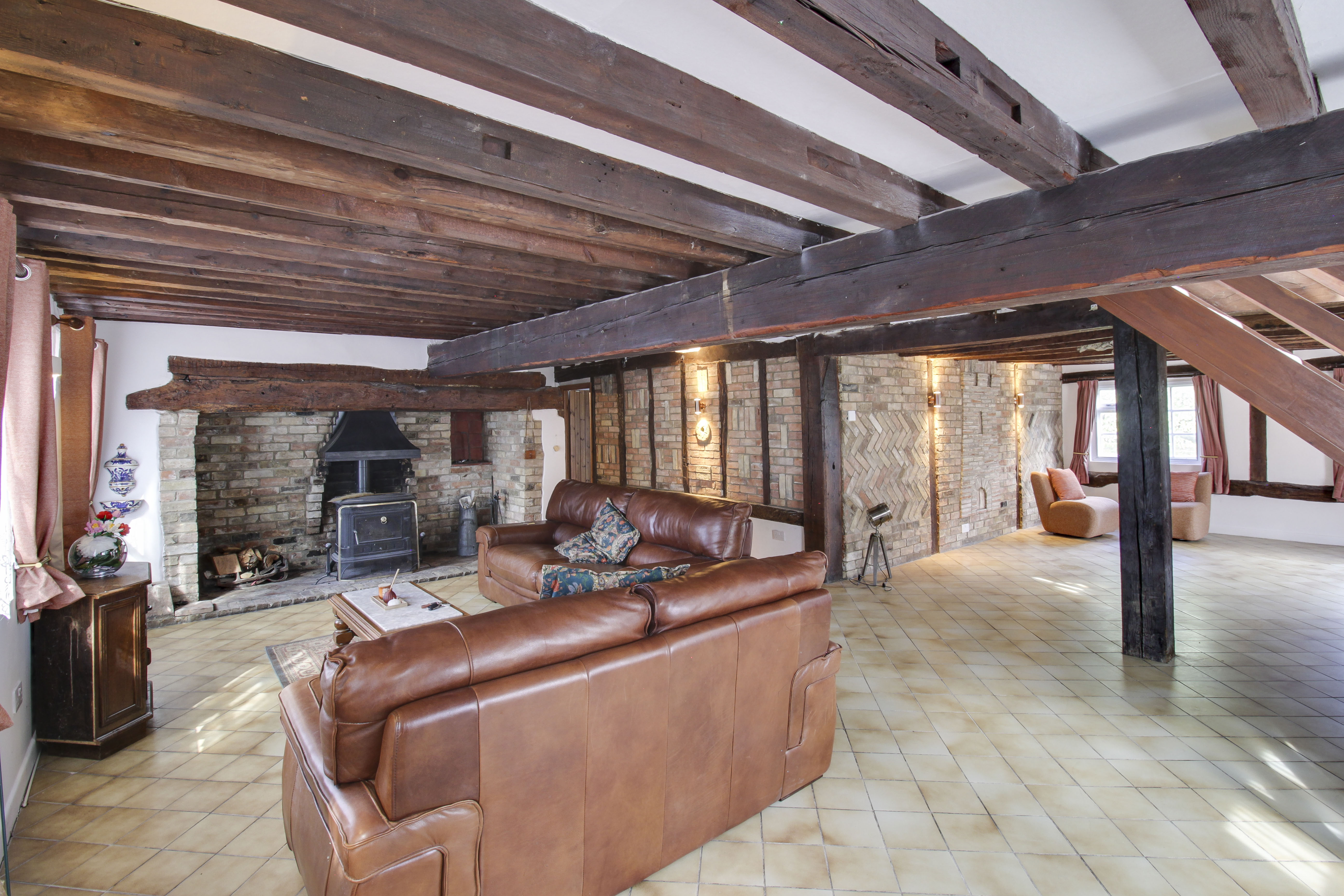 Inside, the home offers approximately 3,000 sq ft of beautifully preserved accommodation spread over three floors. Period features abound, including exposed timber beams, original brickwork, and two impressive Inglenook fireplaces—perfect for cosy evenings by the fire. The property also boasts a rare private well, a striking reminder of its self-sufficient past.