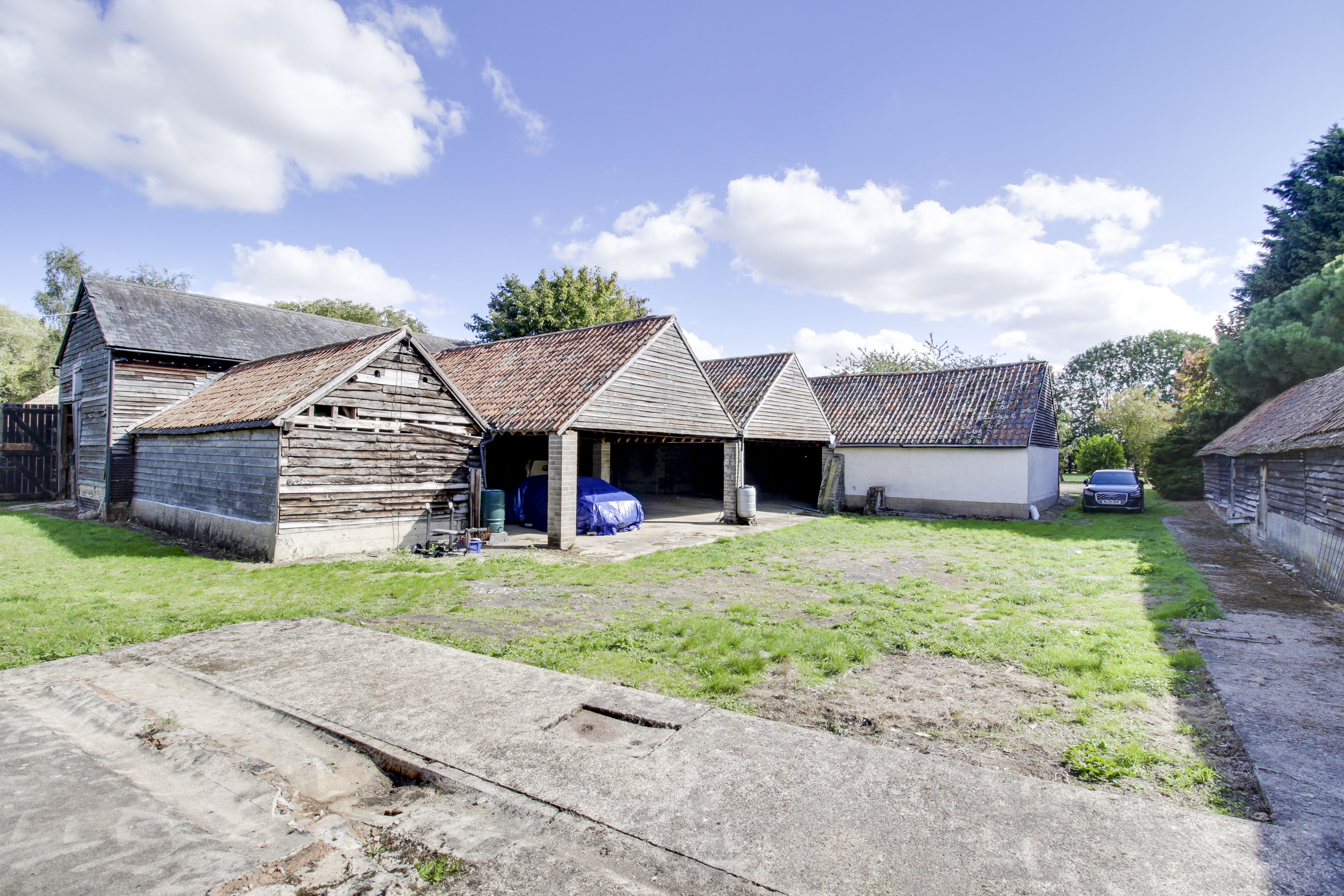 A total of 11 separate barns mainly of timber construction with a mixture of pan tiled and slate tiled roofing. These barns have previously been used for storage and housing cattle. The grounds are mainly laid to lawn with a range of mature trees.