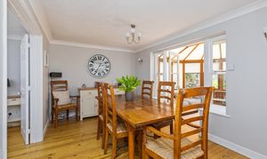 The accommodation comprises: entrance hallway, cloakroom, bay fronted sitting room with gas feature fire with inter-connecting doors into the formal dining room and conservatory.