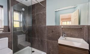 The bay fronted principal bedroom is equipped with fitted wardrobes and refitted en suite shower room.