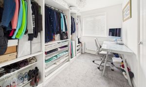 Heading to the first floor, the landing allows access into all four of the bedrooms within the home as well as a sizeable built in storage cupboard. The larger of the bedrooms can be found with open carpeted floor space leaving more than enough room for a large double bed and further storage solutions with ability to add fitted storage if required with the added benefit of an ensuite shower room yet again immaculately decorated and incredibly well kept with a tall heated towel rail. Also to the front of the property is the smaller of the bedrooms - whilst this space currently functions as a home office and dressing room with built in storage it could easily accommodate a single bed or to be used as a nursery for expectant families. At the rear of the property two further double bedrooms can be found with the slightly larger leaving more than enough floor space for a double bed with additional soft furnishings and storage solutions just off from the landing. The remainder of the bedrooms have the shared use of a four piece family bathroom suite with a predominantly tiled surround and flooring, neutral décor and tall heated towel rail.