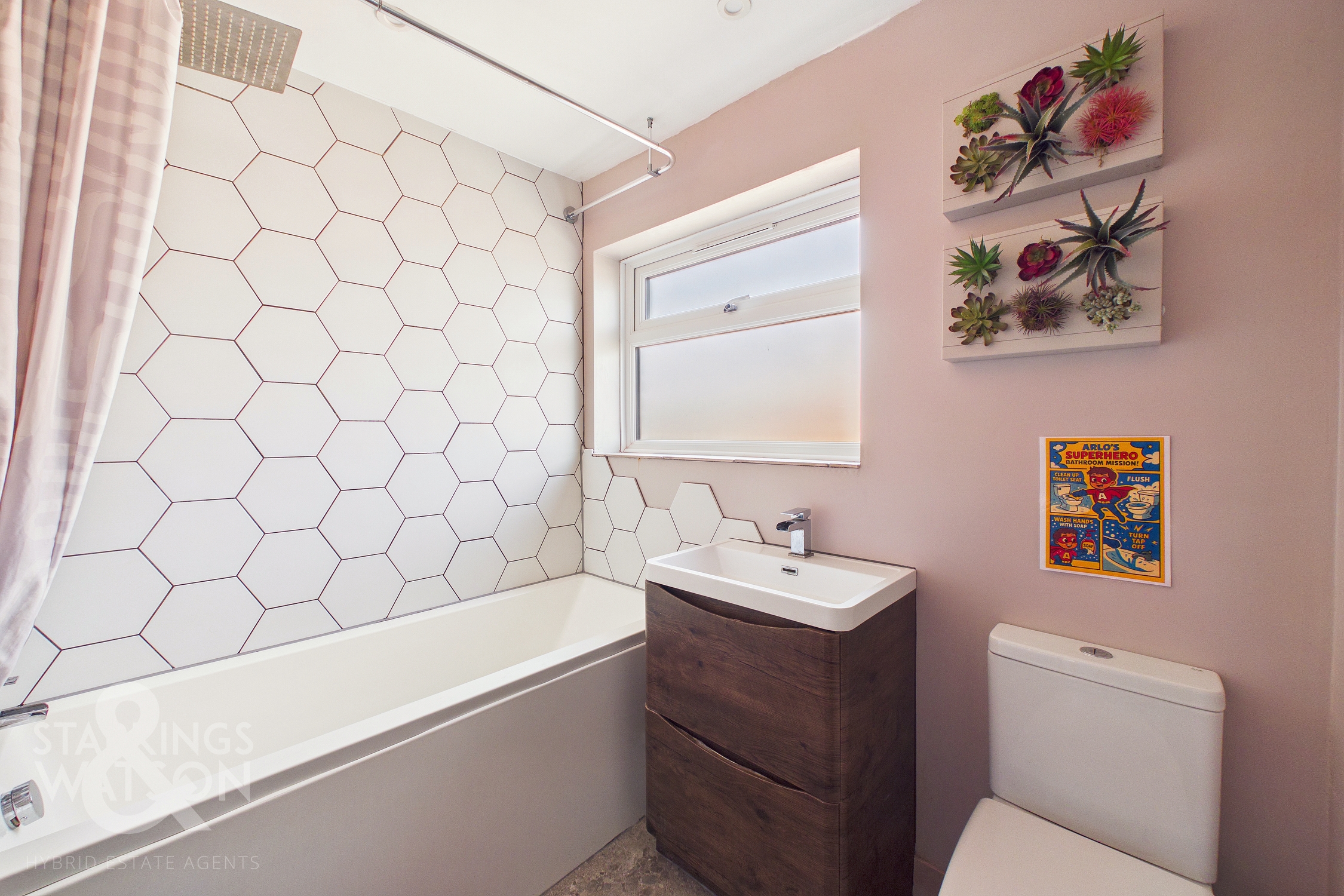 - Family Bathroom with Attractive Tiling & Rainfall Shower
