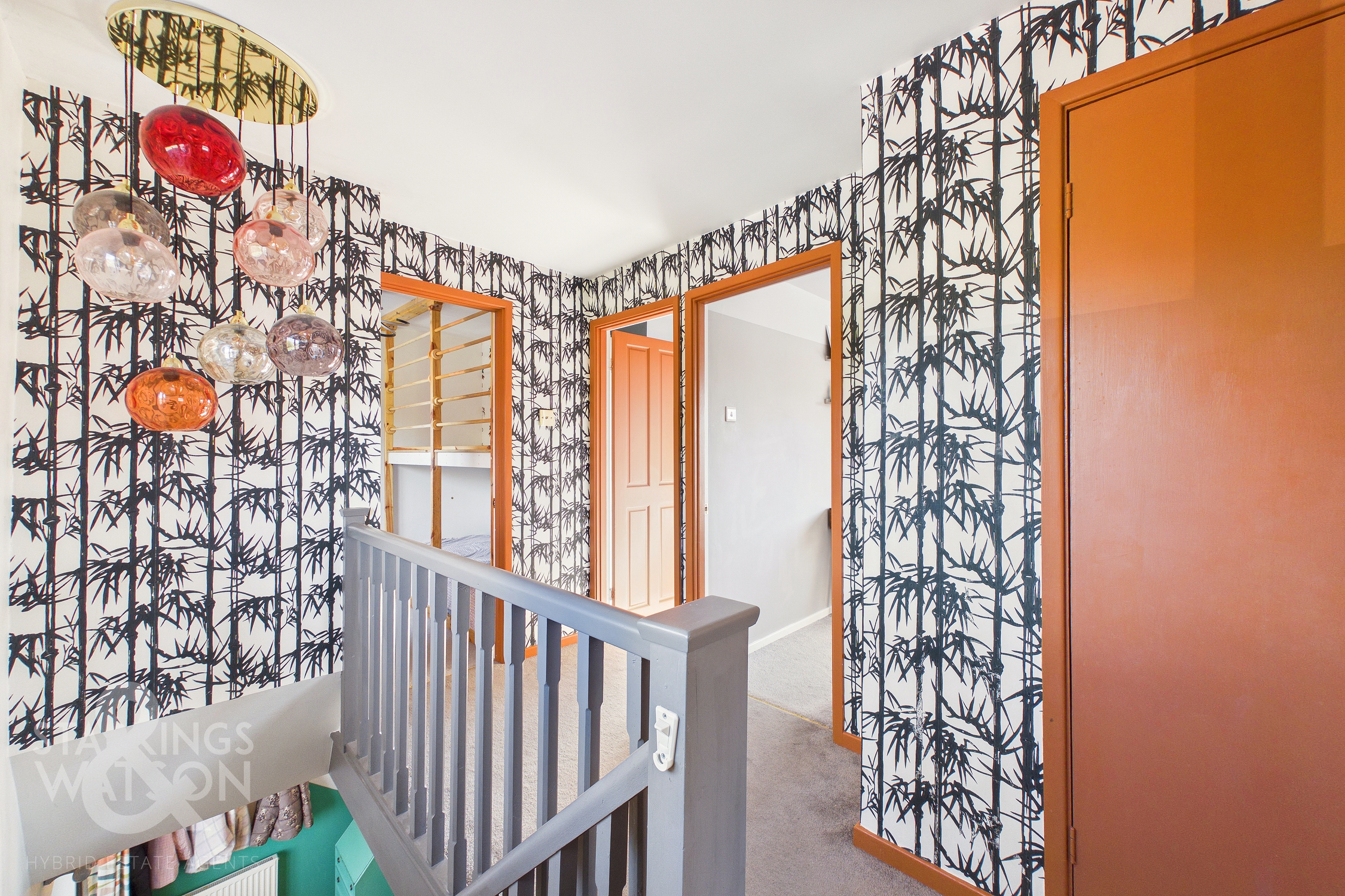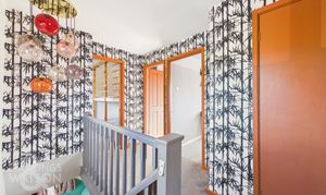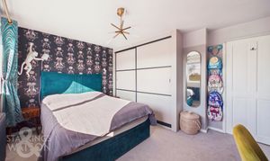 Heading upstairs, the carpeted landing offers an attractive and eye catching decor with built-in storage and front facing window overlooking the communal green space. Doors lead off to the three bedrooms - each of which is finished with fitted carpet and uPVC double glazing with the main bedroom including a large built-in wardrobe with side doors and the smallest bedroom including a built-in storage cupboard over the stairs. Serving all three bedrooms is the modernised family bathroom with the white three piece suite including an attractive tiled splash-back with a thermostatically controlled rainfall shower with a heated towel rail and built-in storage under the hand wash basin.