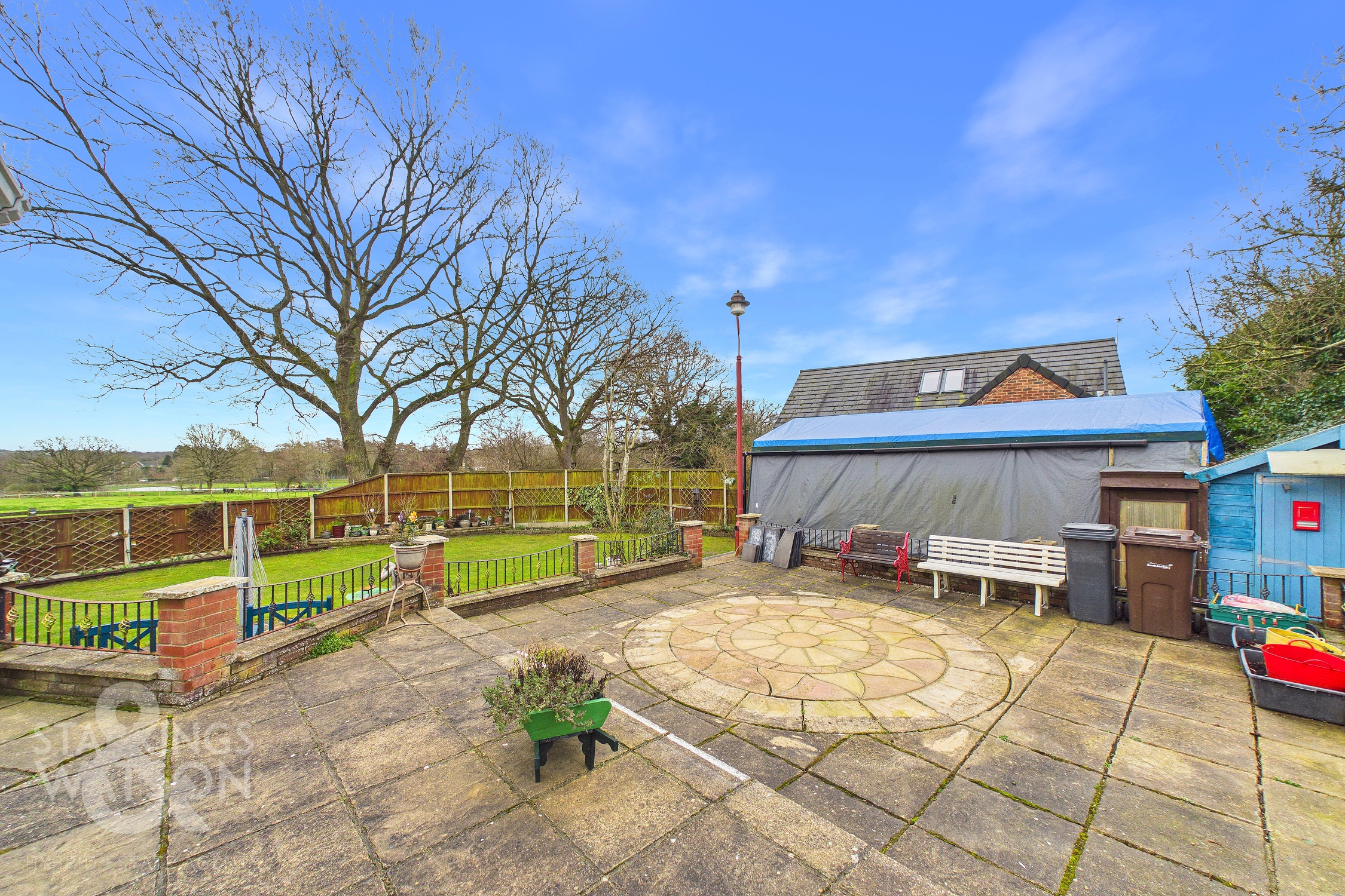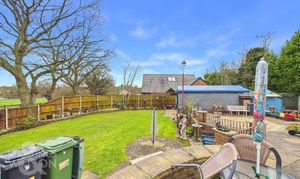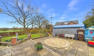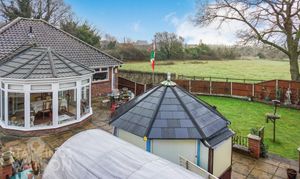 THE GREAT OUTDOORS Exiting via the French doors within the conservatory you'll step out onto the raised garden patio again with uninterrupted views over the fishing lakes beyond. This patio makes the ideal space for sitting and enjoying the summer sunshine whilst a gentle slope down takes you towards the rest of the garden which is predominantly laid to lawn with colourful and vibrant planting borders edging around the side of the property. The very rear of the home has hard standing suited for a workshop and summer house with additional space to extend the lawn if desired with a five bar timber gate allowing for vehicular access and additional parking in front also.