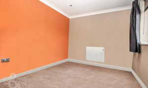 Fitted carpet, wall mounted electric heater, uPVC double glazed window to rear, television point, smooth coved ceiling with recessed spotlights.