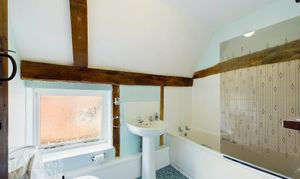 Heading up to the first floor landing there is a storage cupboard as well as inner landing leading to the 2nd floor. On the first floor there are two bedrooms and a bathroom all with beams, solid wood flooring and character features. There is a double bedroom to the side with the family bathroom opposite, which offers a bath with shower over. The main bedroom is found to the front with vaulted ceiling and built in storage cupboards.