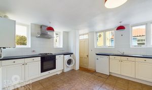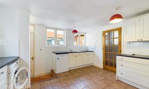 Entering via the main entrance door to the side you will find the sitting room. A characterful room with exposed beams and stairs to the first floor. The tiled flooring leads you through to the kitchen at the front of the house. The kitchen offers a range of fitted units with rolled edge worktops over. There is an integrated electric oven and gas hob as well as space for washing machine and dishwasher. The gas boiler can be found In the kitchen as well as the front door onto Exchange Street. To the side is the side lobby with door as well as the ground floor w/c.