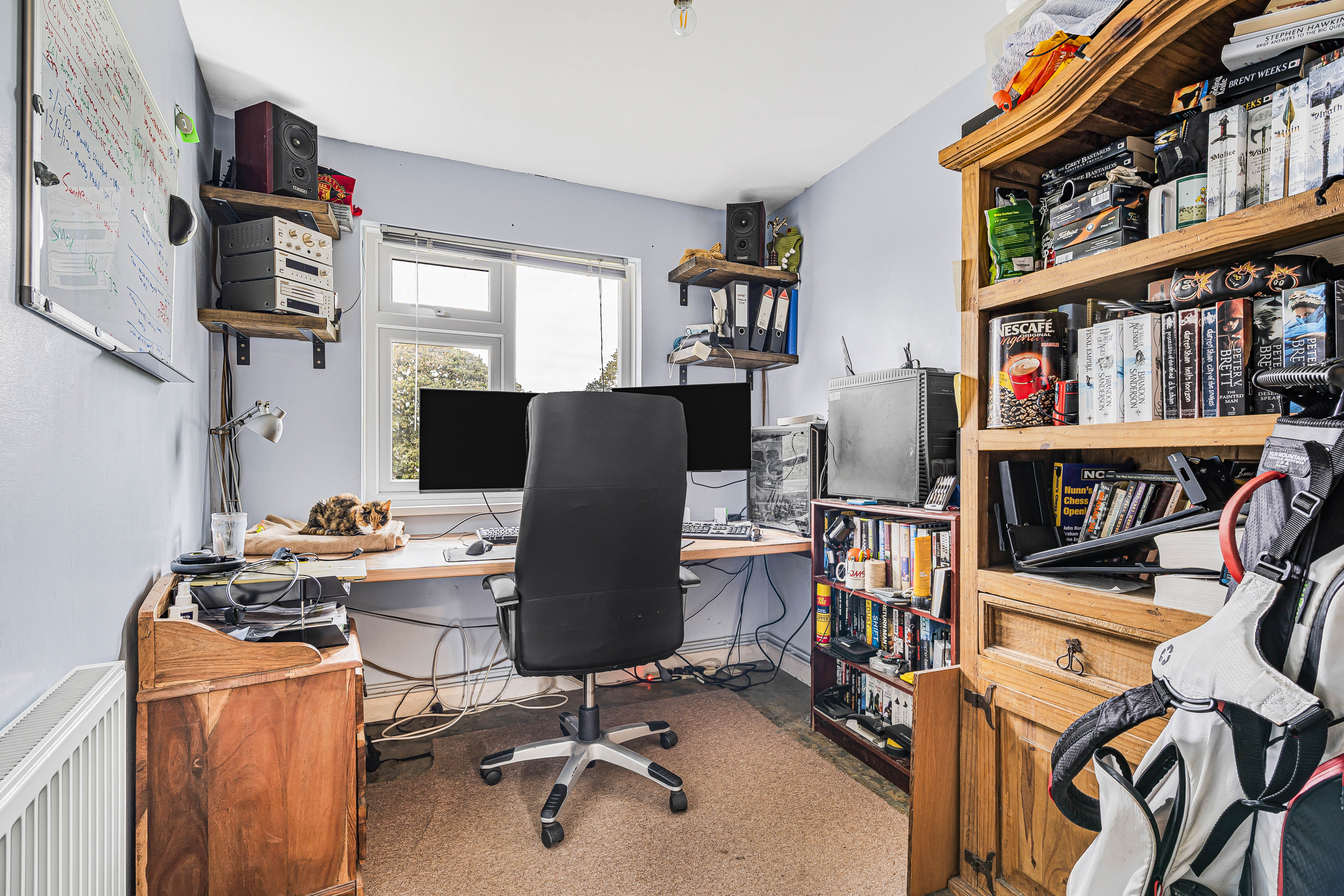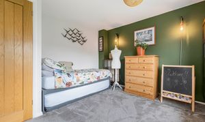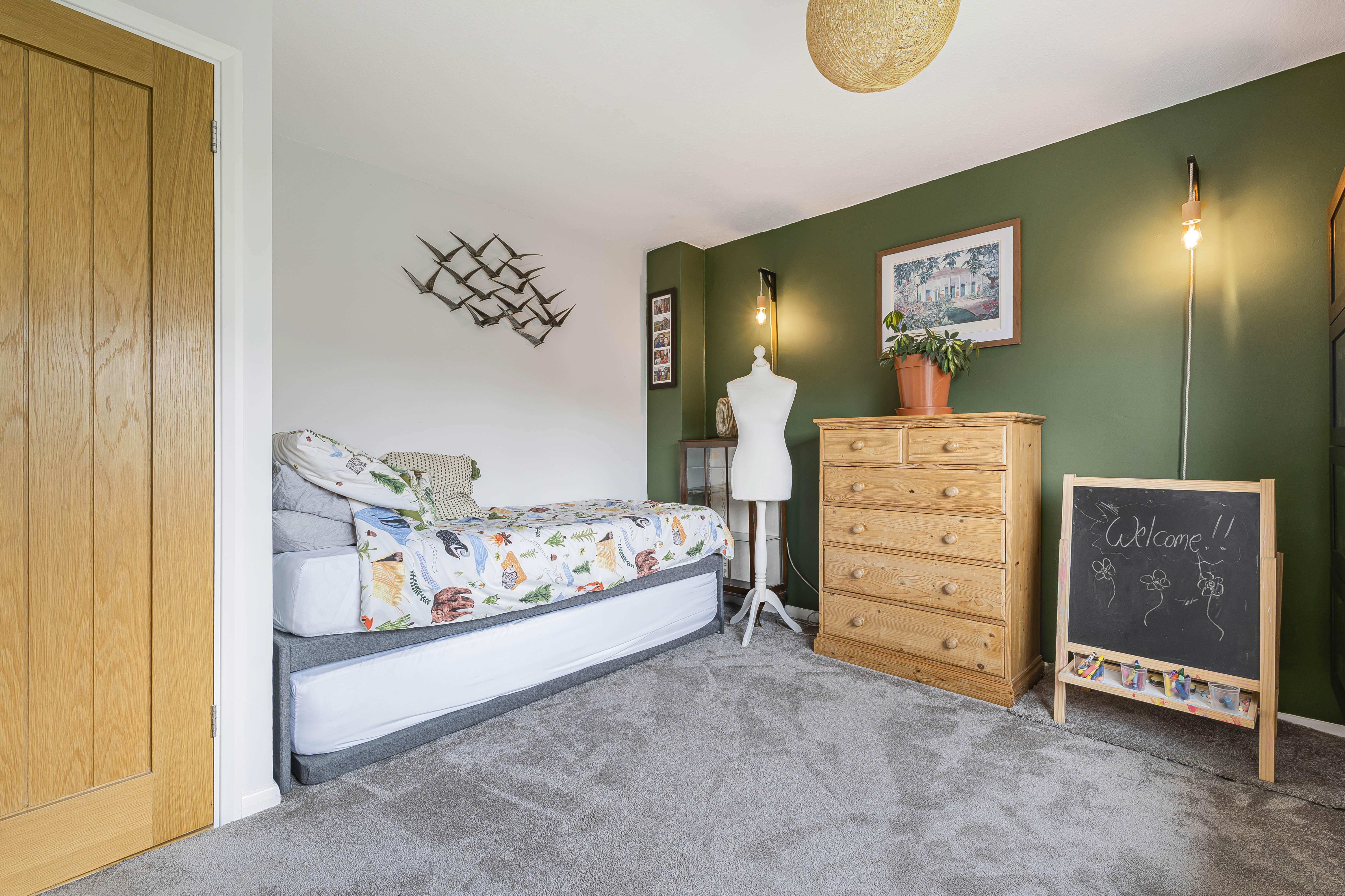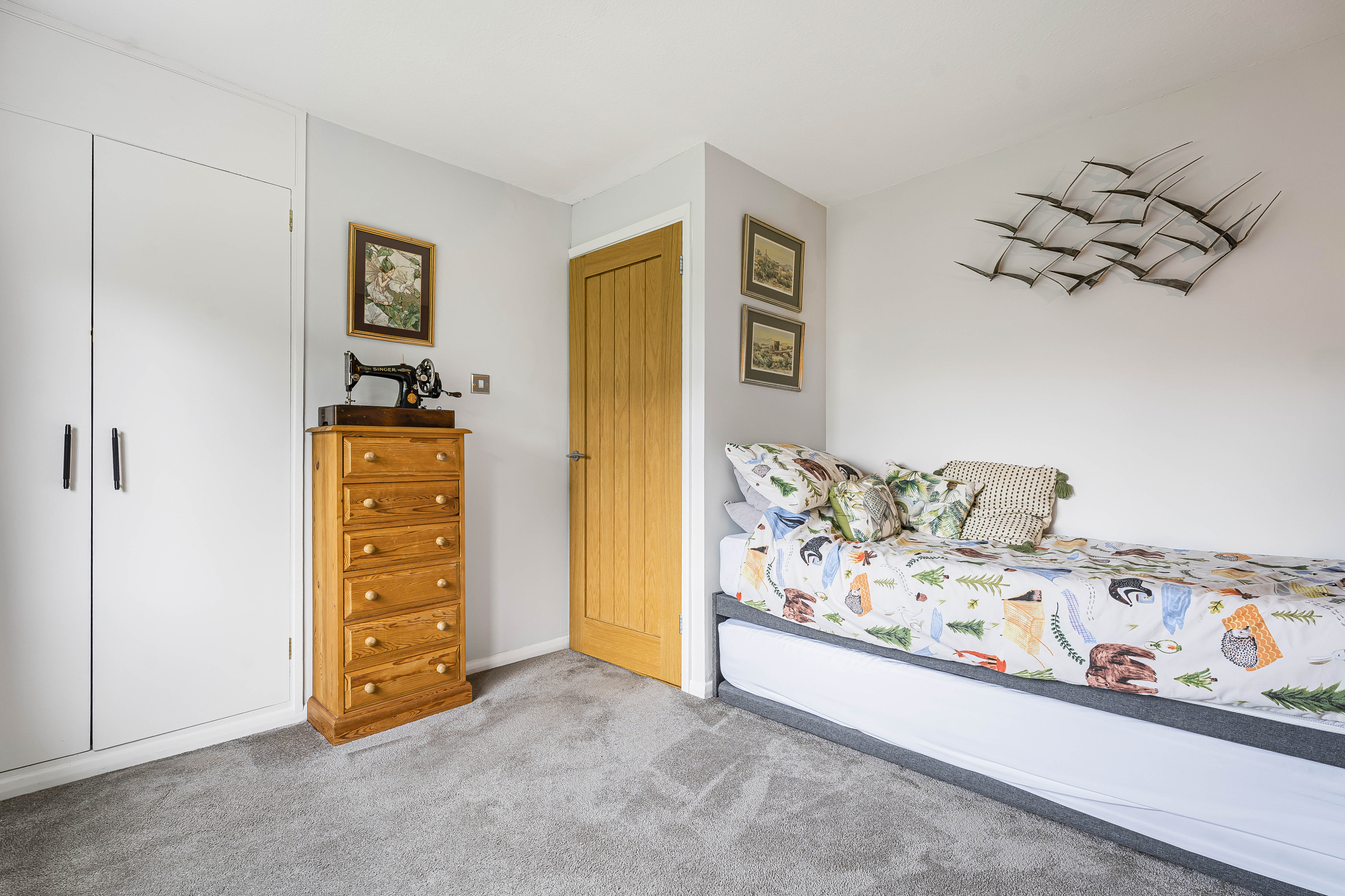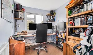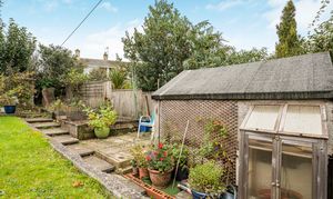 The rear garden offers a sunny aspect and a great deal of privacy, with a raised lawned area, side paved area with timber storage shed. Enclosed with timber fencing with established borders with trees and shrubs. Side gated access.