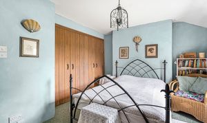 To the first floor the main bedroom has built in wardrobes and views across the garden, bedroom two also has storage.
