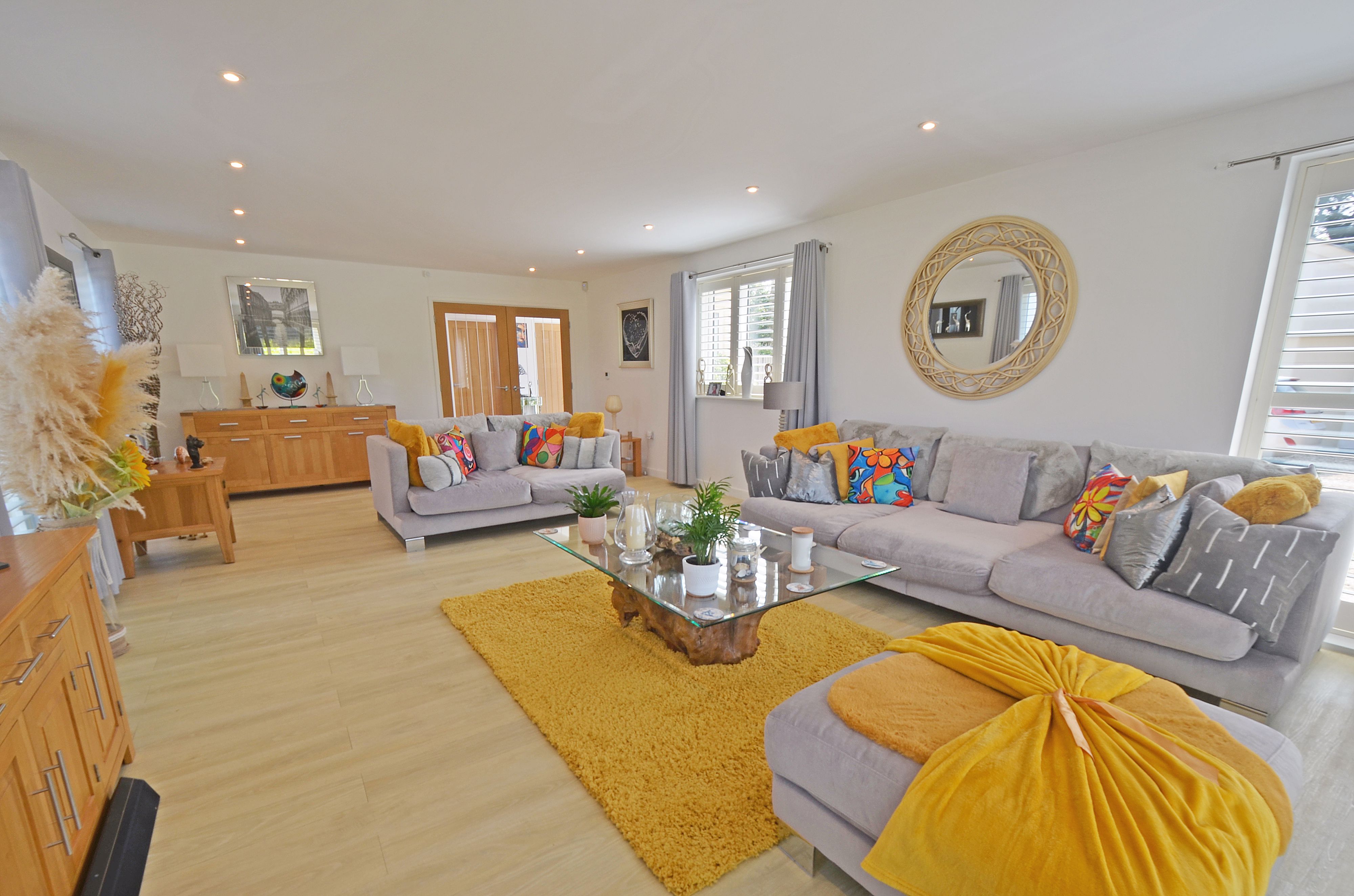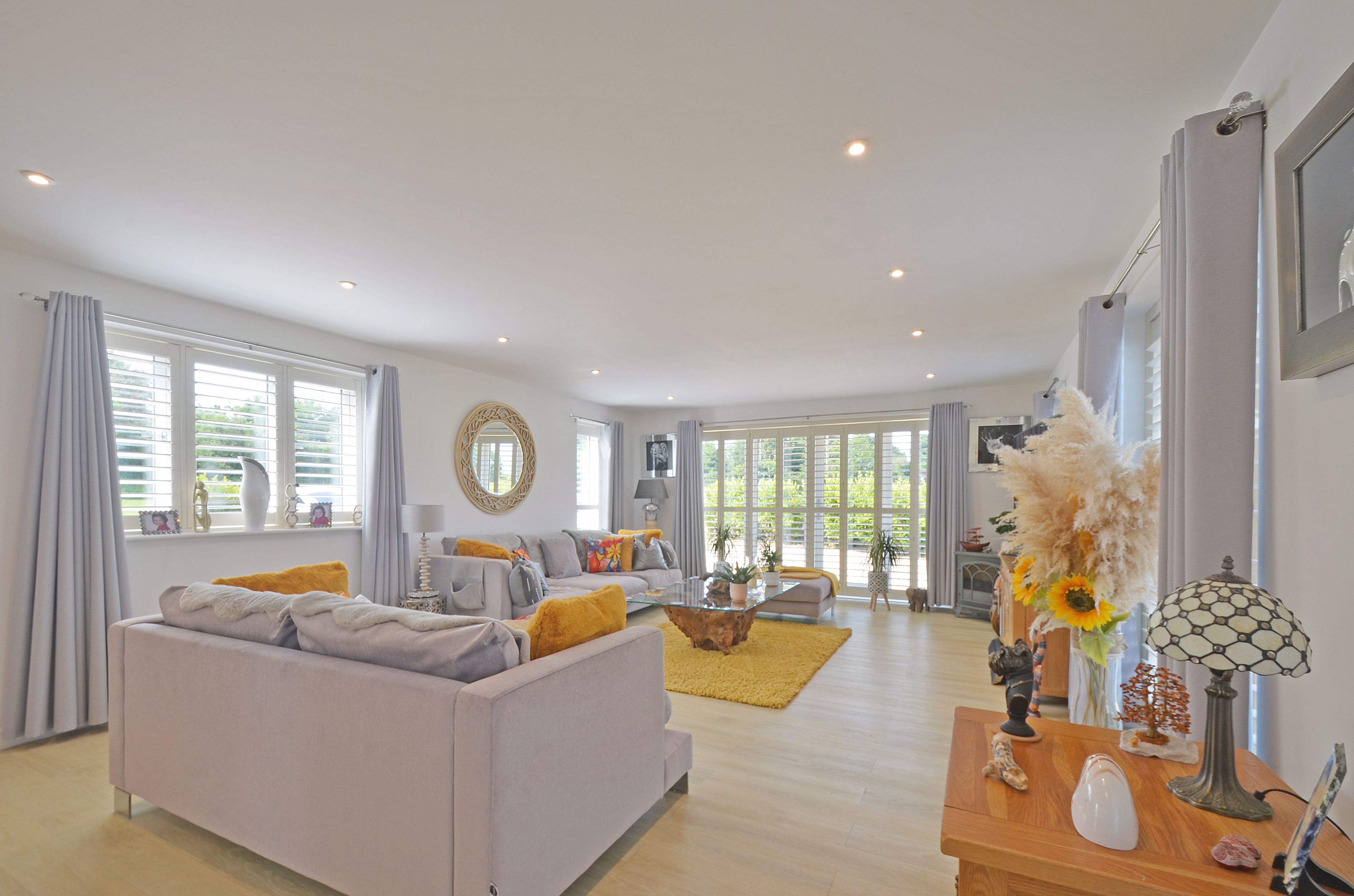 The house boasts 2664 SQ FT. OF ACCOMMODATION, designed to maximise the living space and OOZES LUXURY. Built to overlook its LARGE SOUTH AND WEST FACING GARDENS, PRIVATE DRIVEWAY WITH AMPLE PARKING FOR SEVERAL CARS and a LARGE DETACHED DOUBLE GARAGE/WORKSHOP –