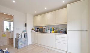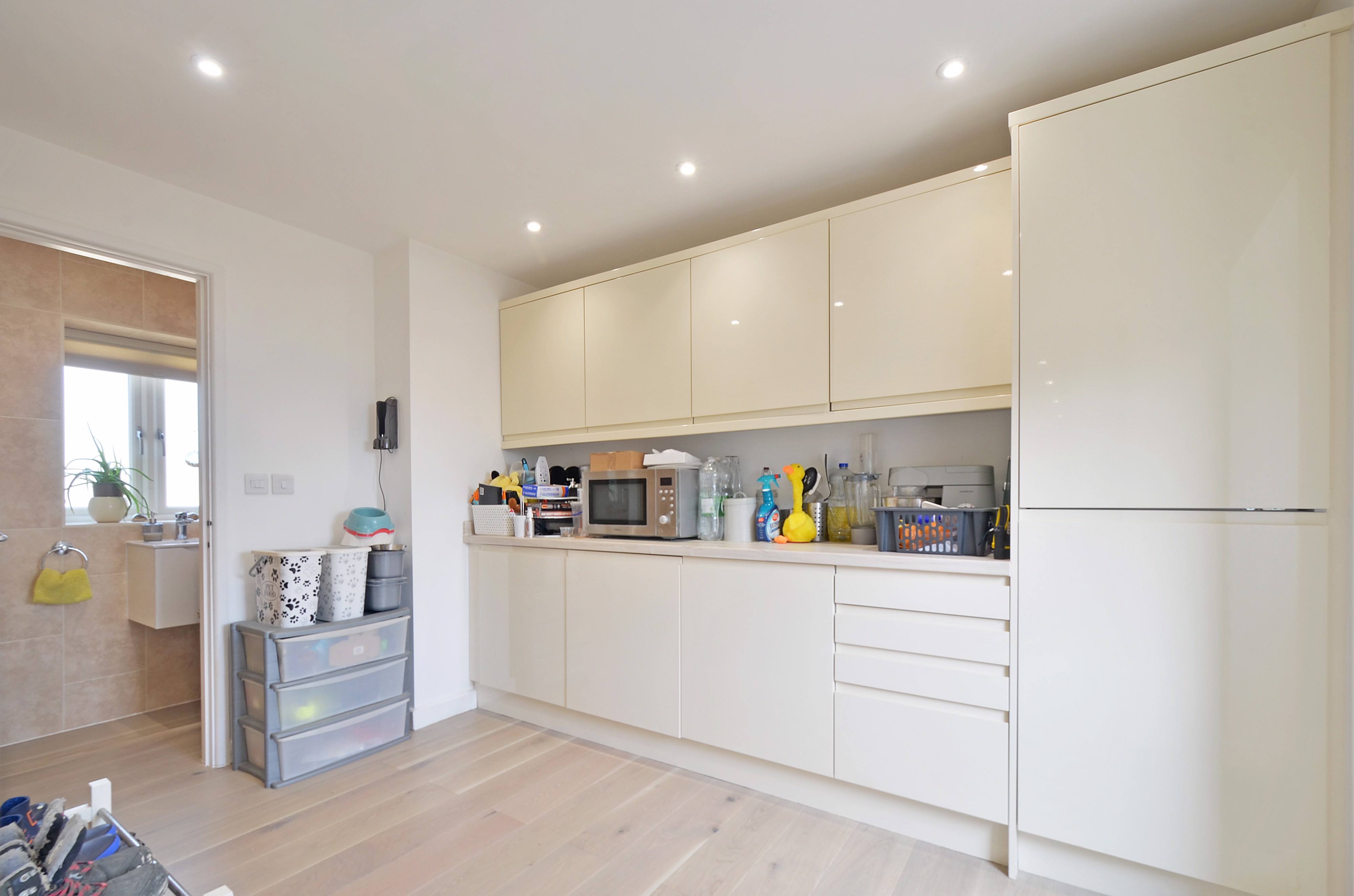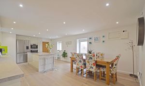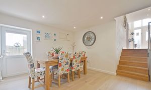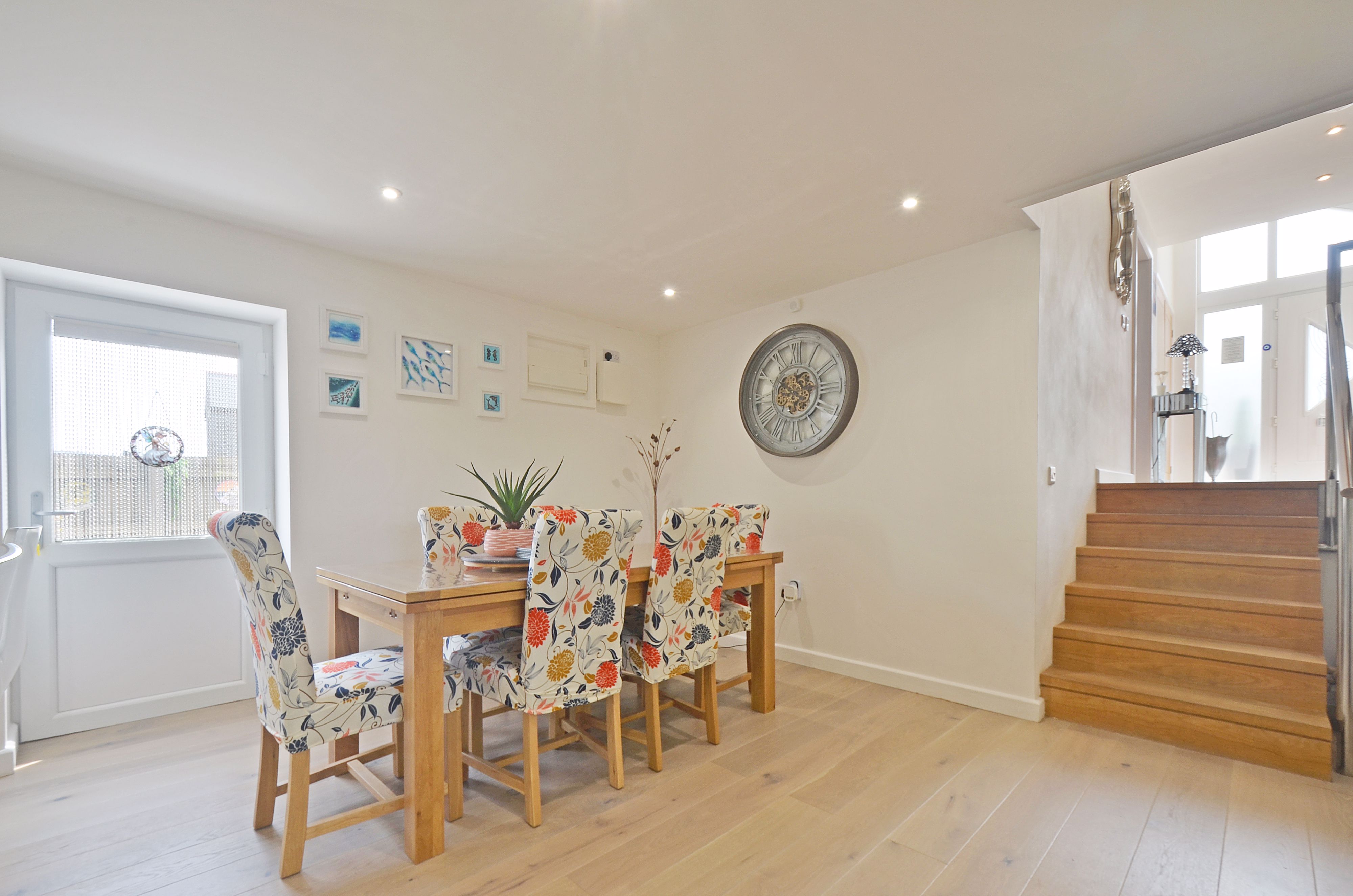 The lower ground floor offers a fantastic open plan fitted kitchen/diner with a good size adjoining utility room with a separate toilet and shower. A handy space to wash off when coming in from the beach. The utility room has matching handless units, integrated washer/dryer and integrated fridge freezer.