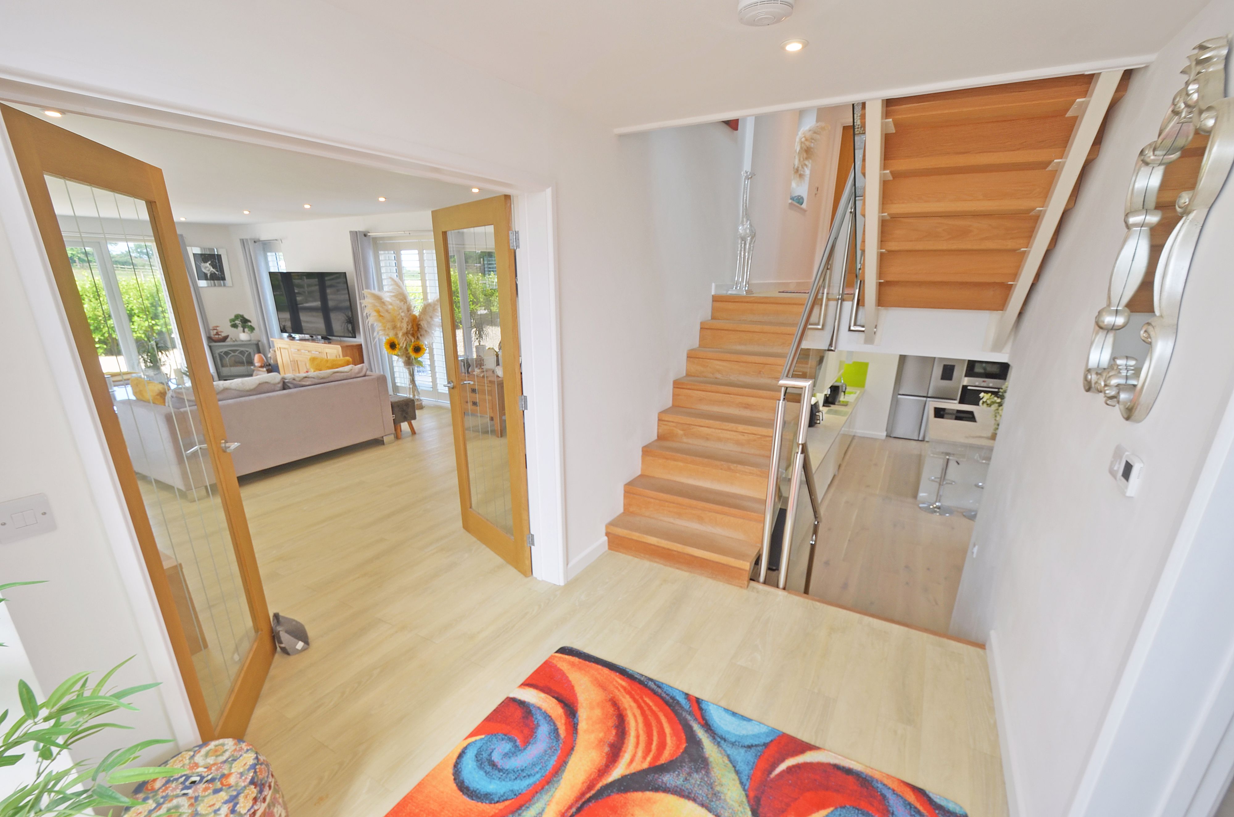 This beautiful home is finished to a very high standard with stone clad and has part of the original Barn with Cornish Granite, natural slate roof and feature composite door. Internally a Solid oak staircase with glass panels and stainless steel handrails, Bespoke Plantation shutters are fitted throughout the property with individually controlled underfloor heating and luxury Amtico flooring in every room apart from lounge which is engineered oak floor. Genoa Oak doors with complimentary Steel furnishings.