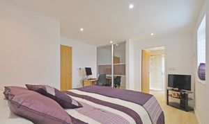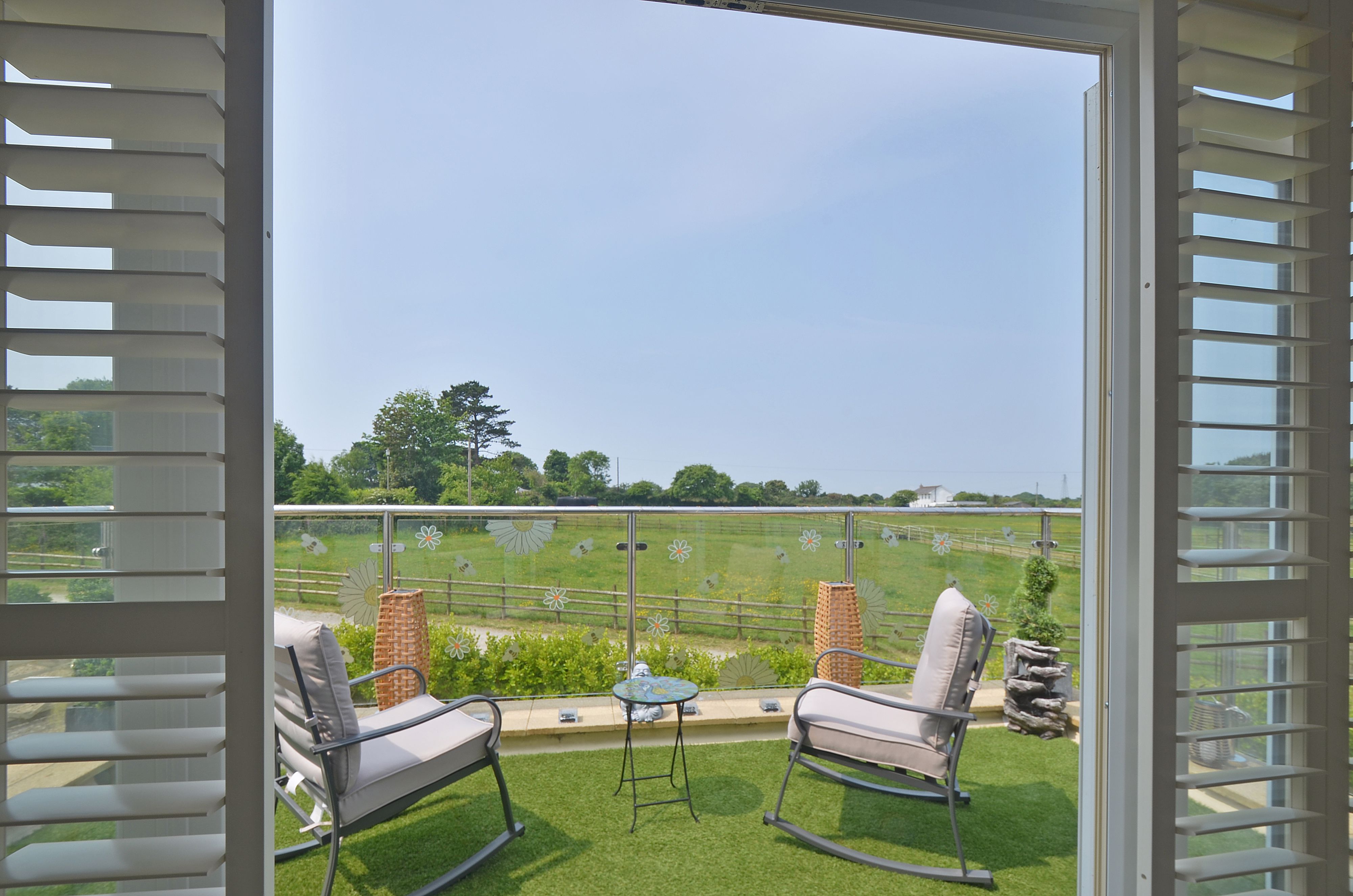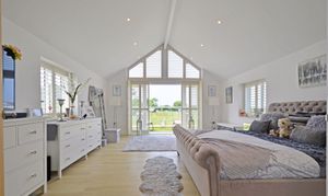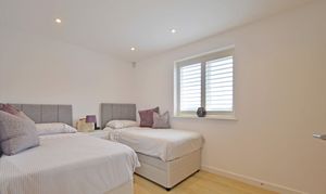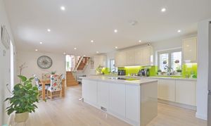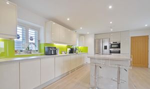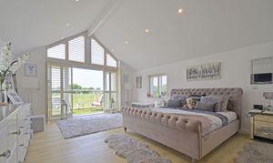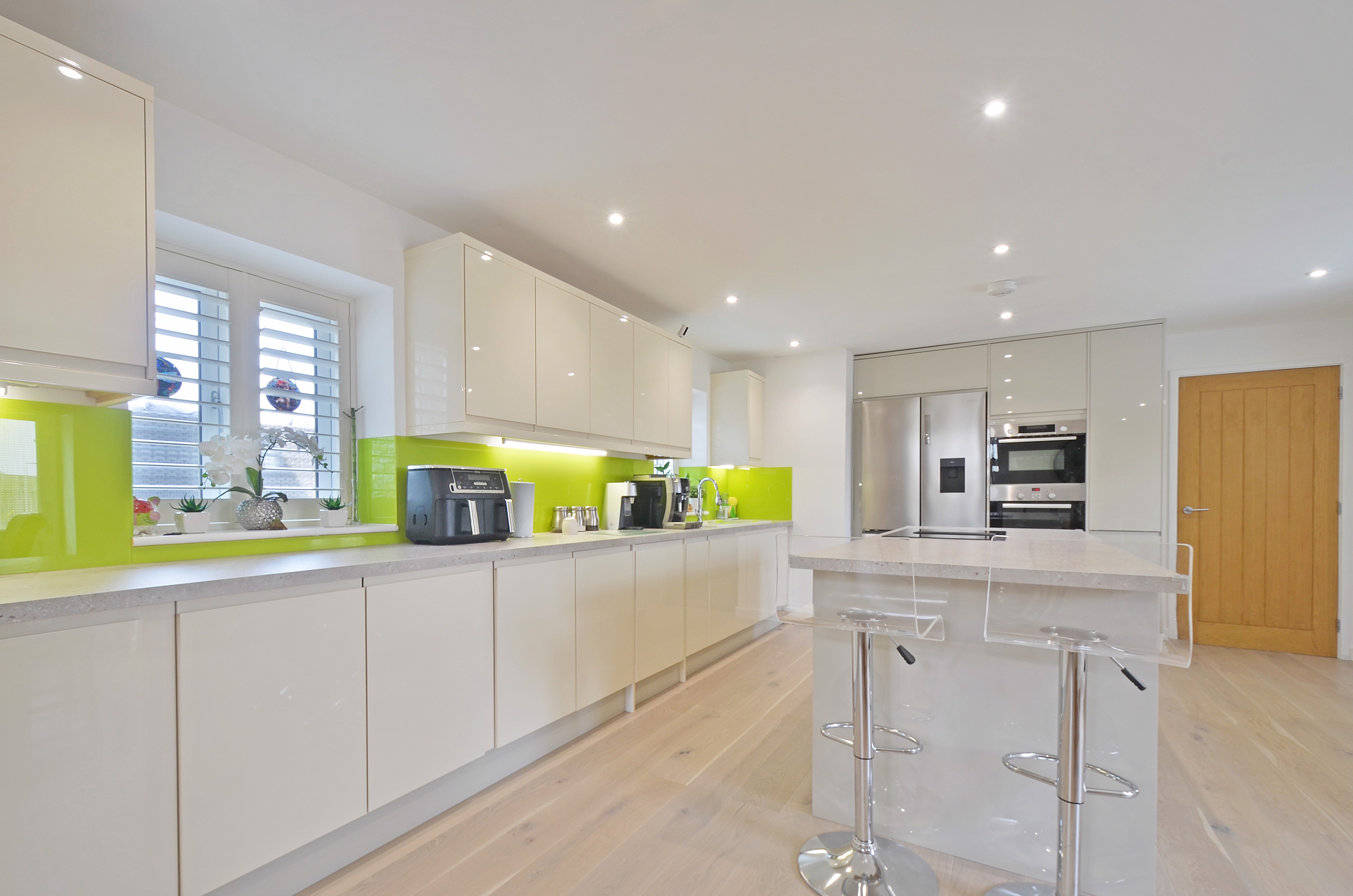 The kitchen has a range of contemporary handless units, integrated Bosch Fan oven & combination microwave above, induction hob on central island, Integrated dishwasher & plumbed in American style fridge freezer. This unique property has a dual aspect lounge with a beautiful view which benefits from two sets of French doors leading out to a paved private patio area - a perfect space for any entertainment hosting/ Alfresco dining.