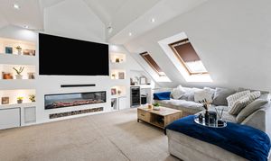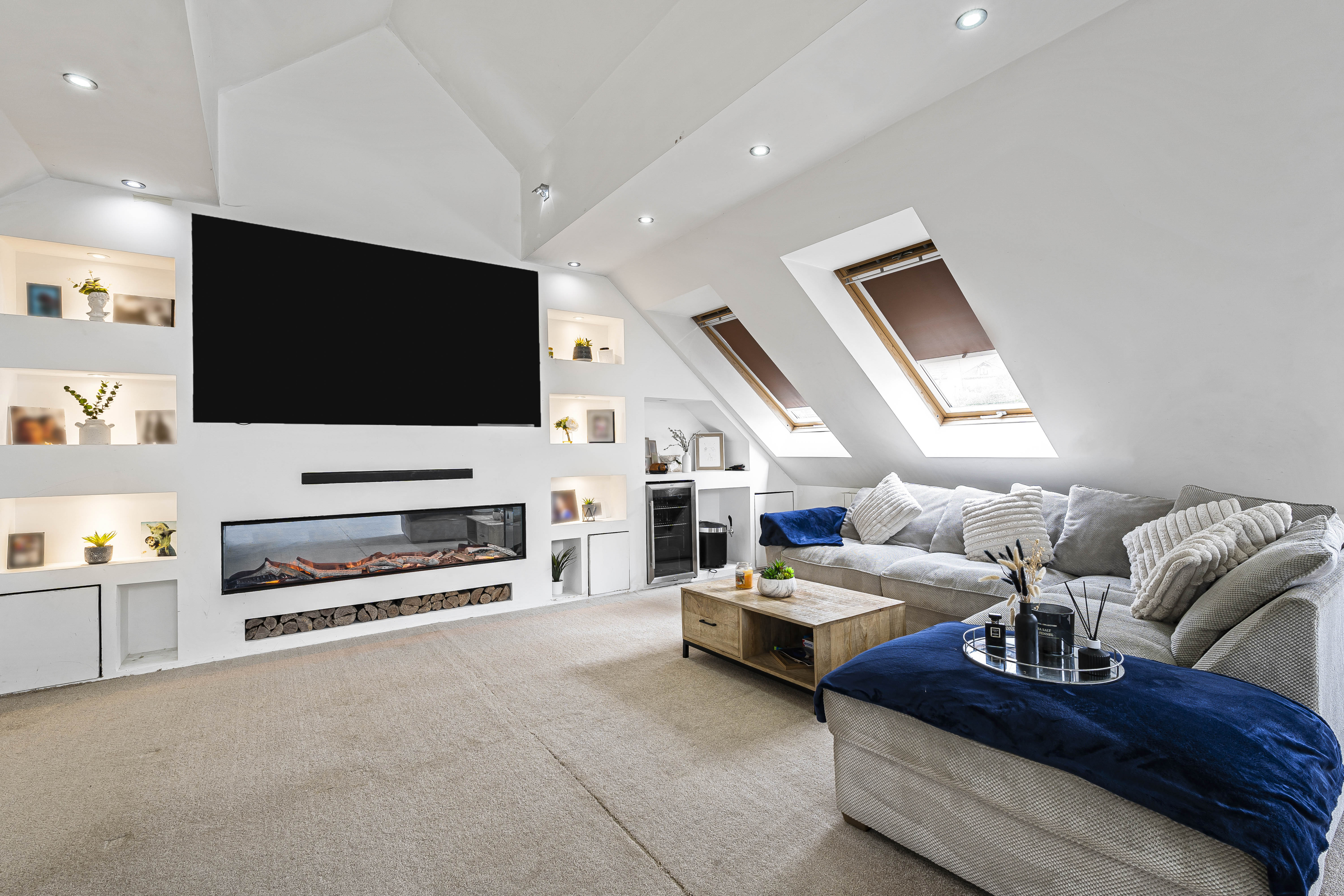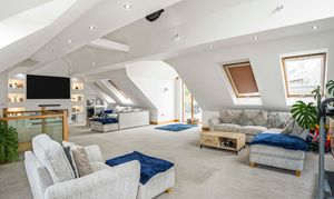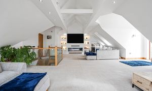 To the first floor you have the most beautifully designed living area with vaulted ceilings and large picture windows, adding to the feeling of light and space, it really does offer the wow factor! This expansive room has a bespoke media wall, which is a lovely feature.