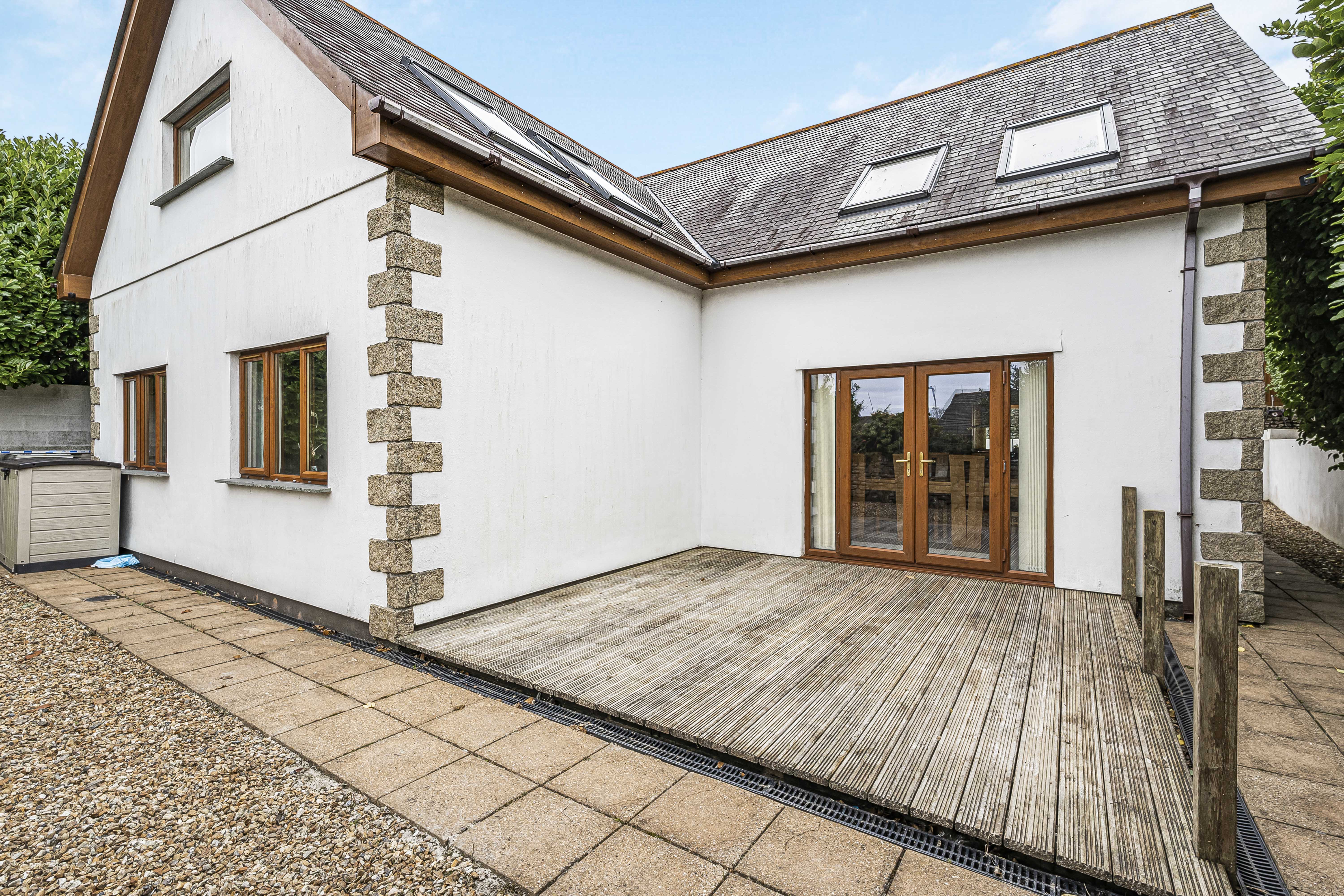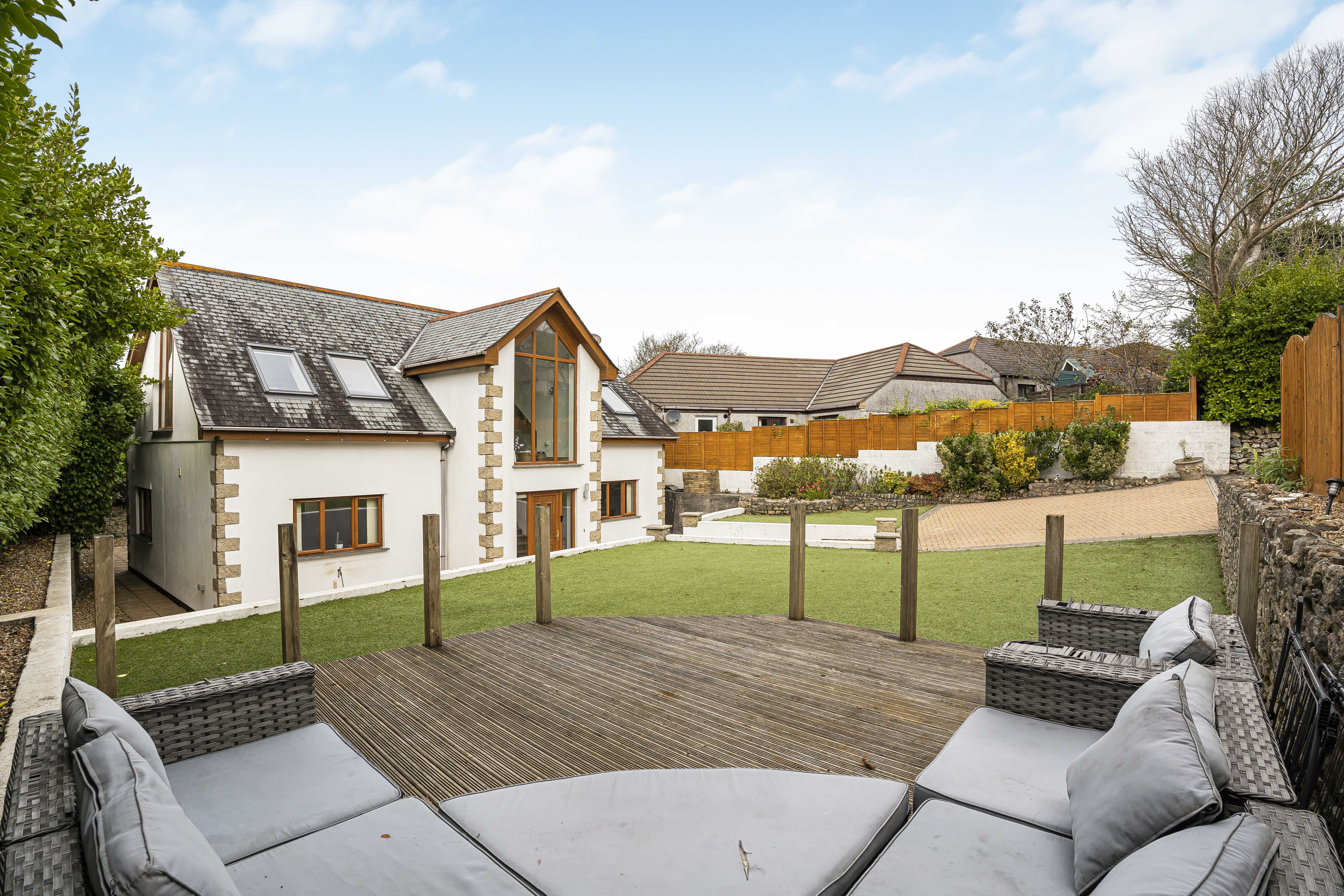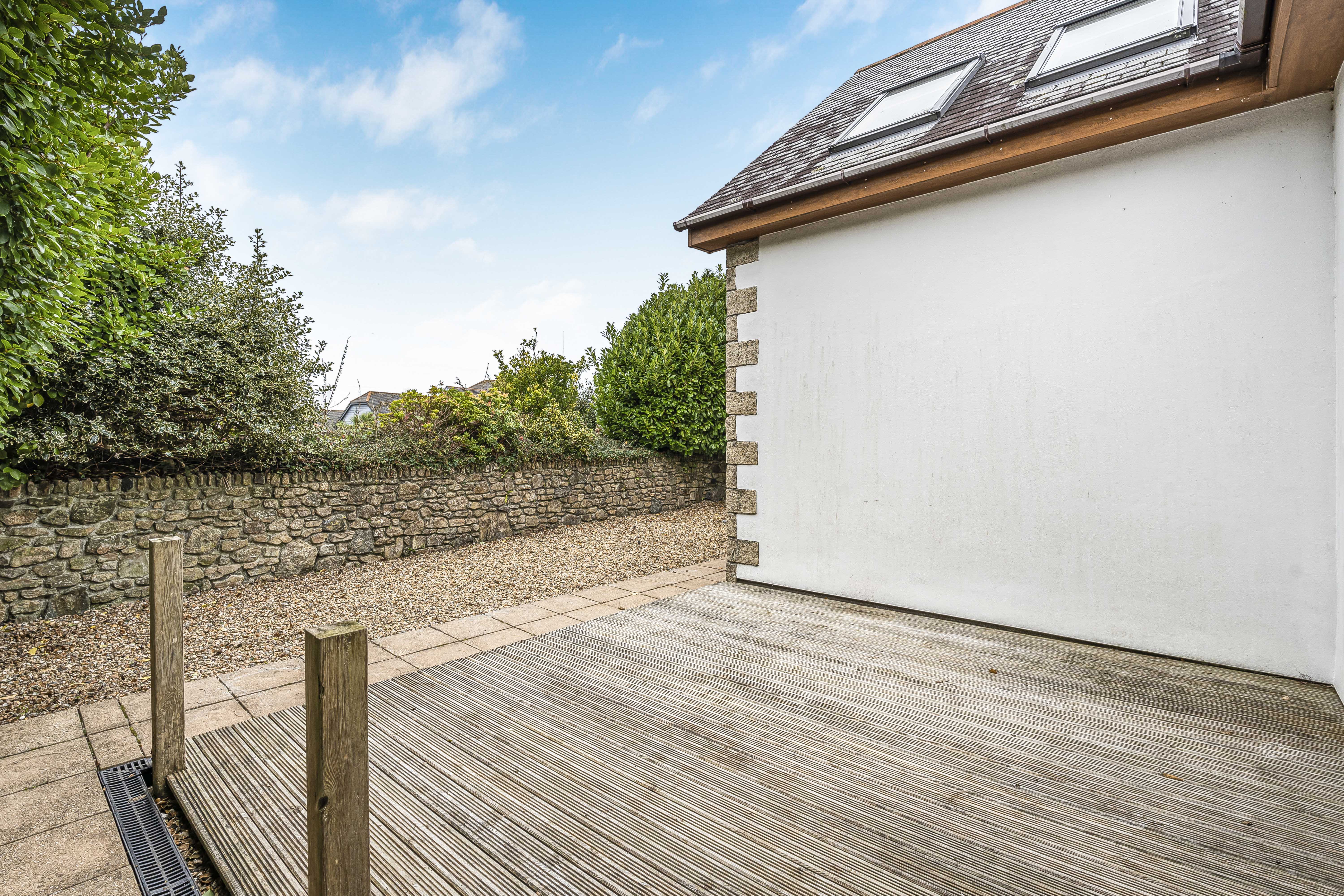 Whilst to the rear again being very private you have a substantial decked area, outside tap and electric points, with 4ft rear boundary Cornish granite wall with well-established shrubbery planting.