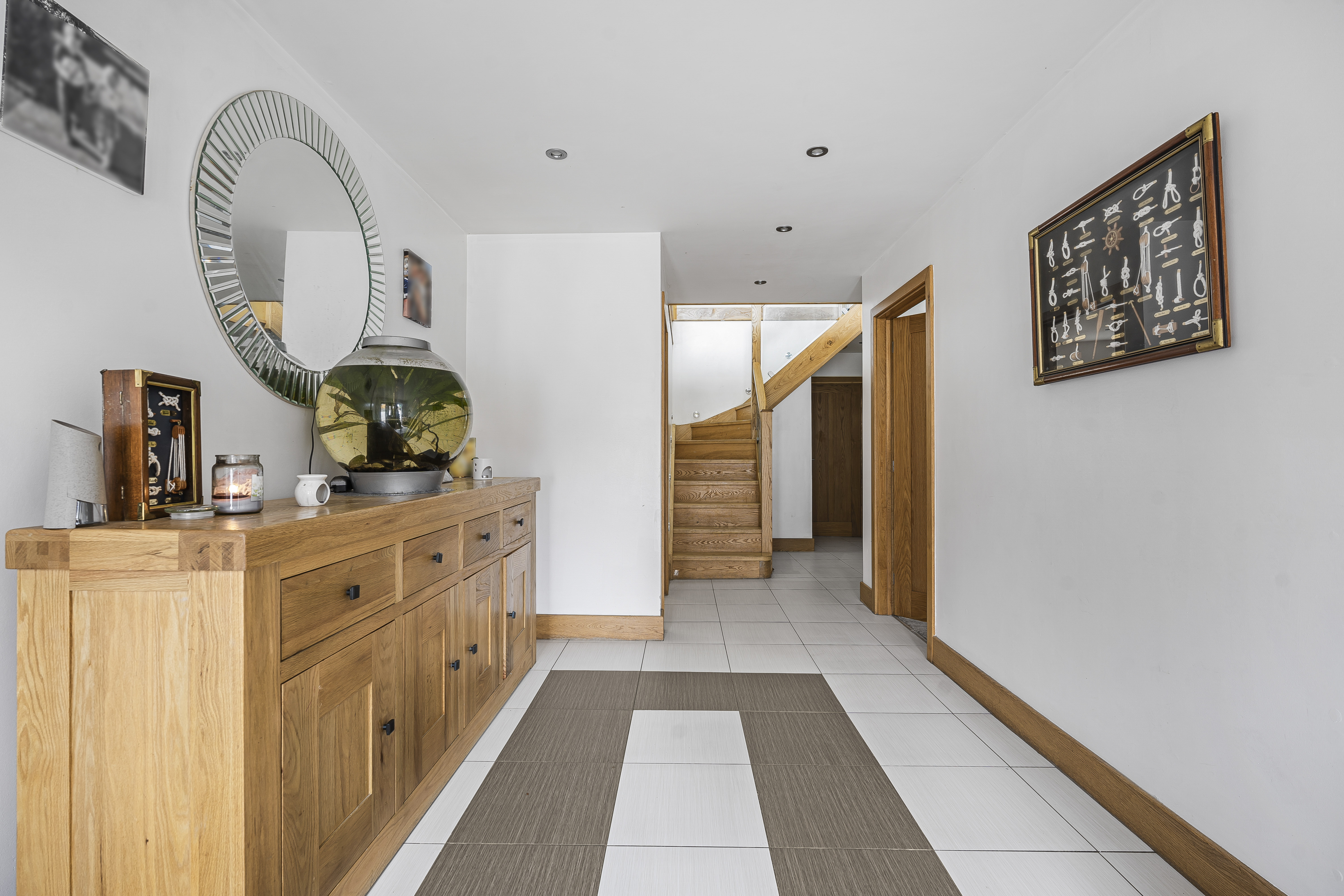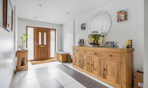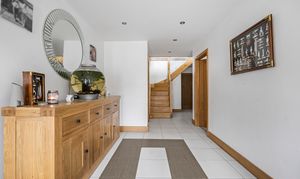 You enter into the large entrance hallway, which sets the tone for the rest of the property with stunning tiled flooring and underfloor heating which continues throughout the ground floor, stunning winding Ash staircase to 1st floor, tiled flooring, inset LED lighting doors to all ground floor rooms