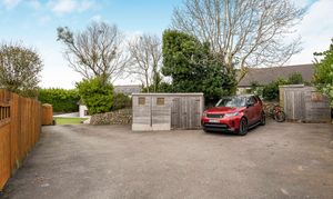The property is approached via a driveway with parking for several vehicles, two good sized timber sheds for external storage.