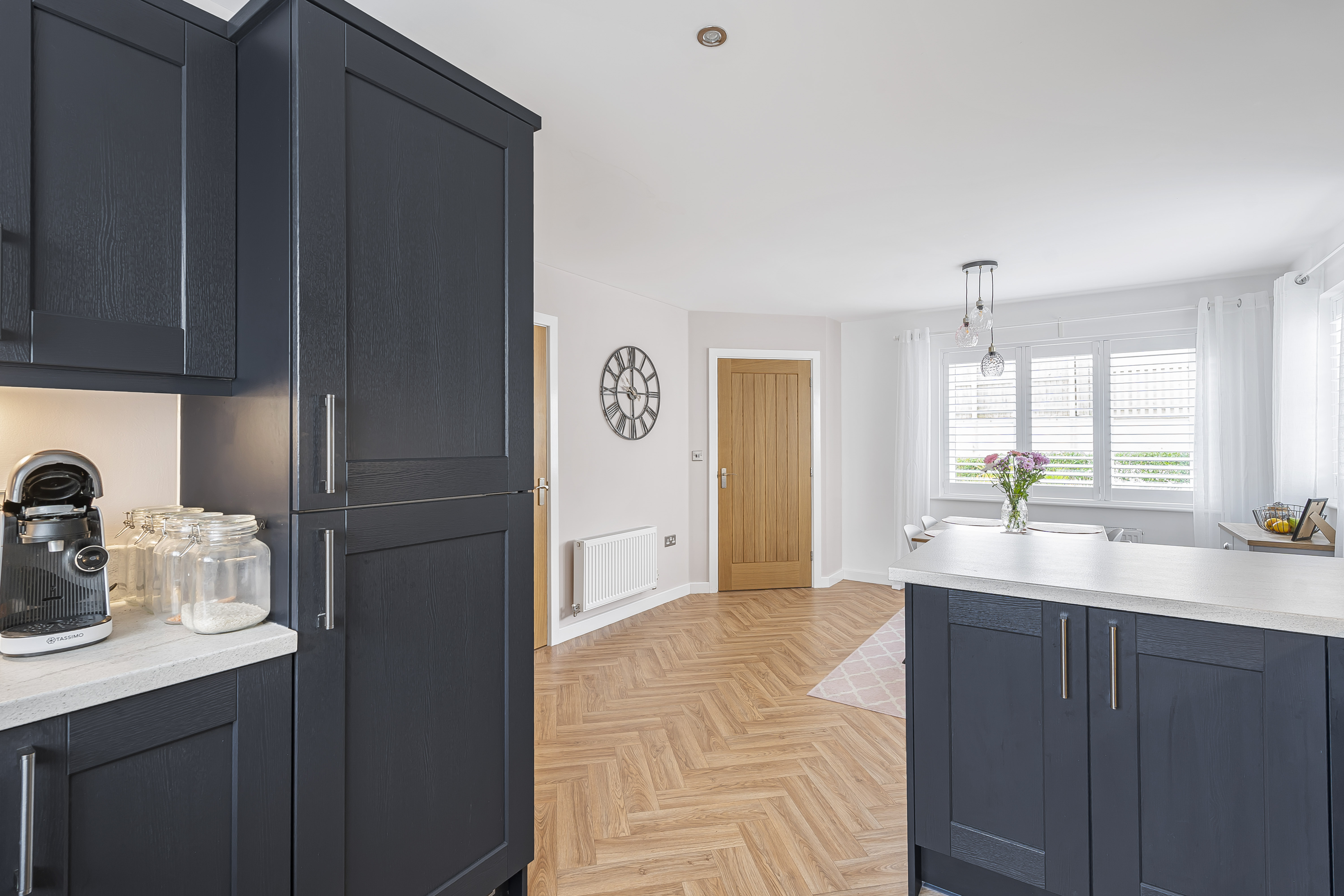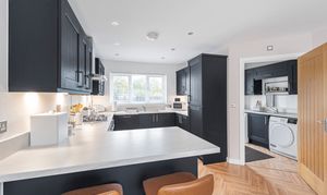 Accommodation on the ground floor comprises of a cloakroom/WC, generously proportioned and beautifully appointed high quality kitchen/dining area, which is triple aspect. The kitchen offers a range of navy shaker style base and wall cabinets, integrated dishwasher, fridge freezer and built in oven, gas hob and extractor over, space for a dining table