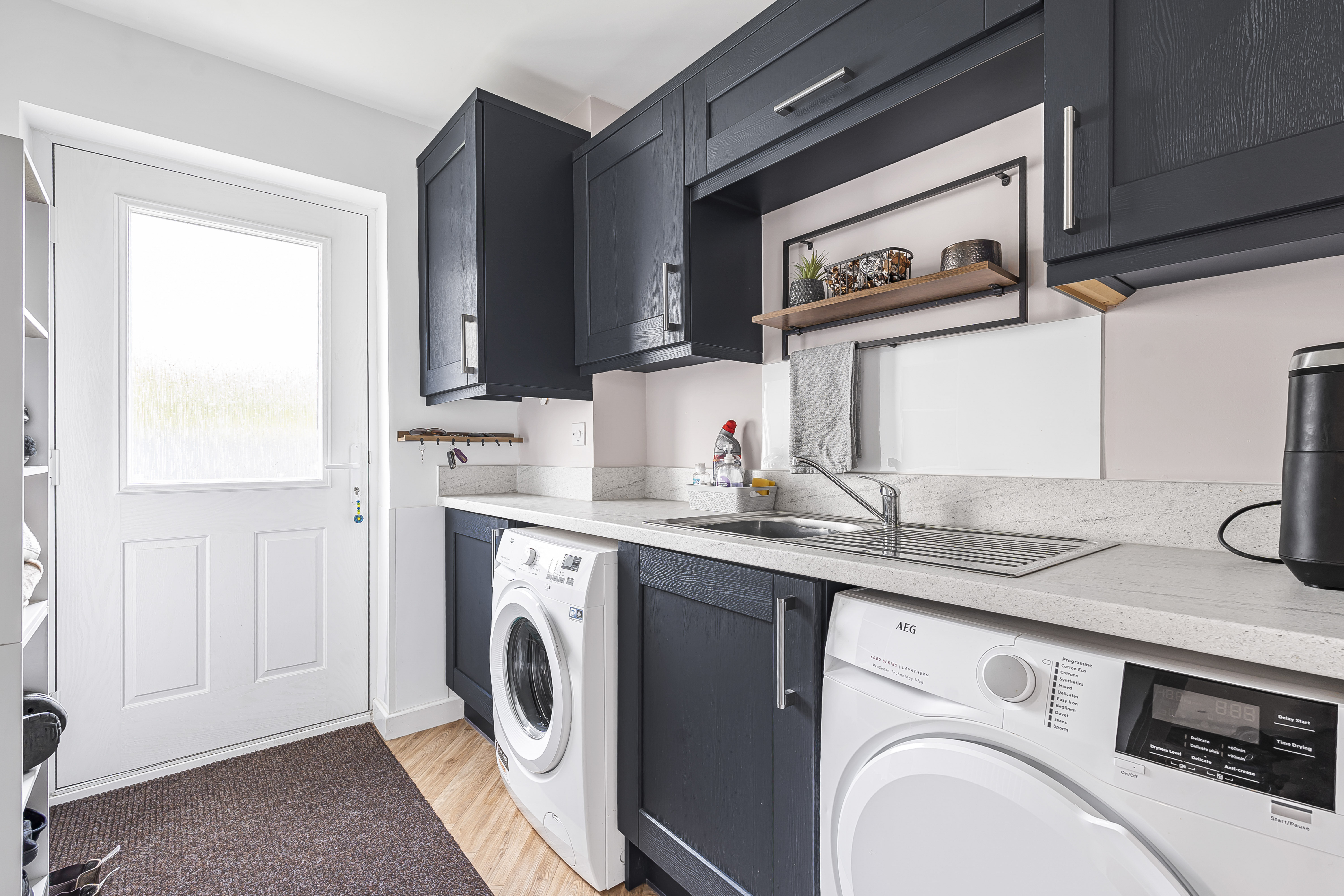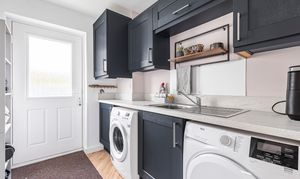 There is a door out to the utility area with space for white goods with an external door out to the garden.