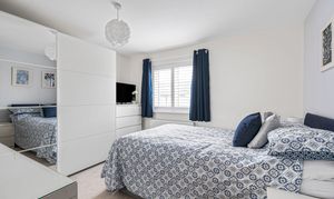 The large living room, dual aspect, is light airy with French doors leading out to the rear garden.
