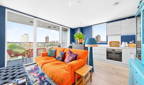 Overlooking Millfields Park, this modern two-bedroom apartment offers rare open green views and excellent transport links. Clapton Overground is just moments away, with trains to Liverpool Street in 12 minutes.