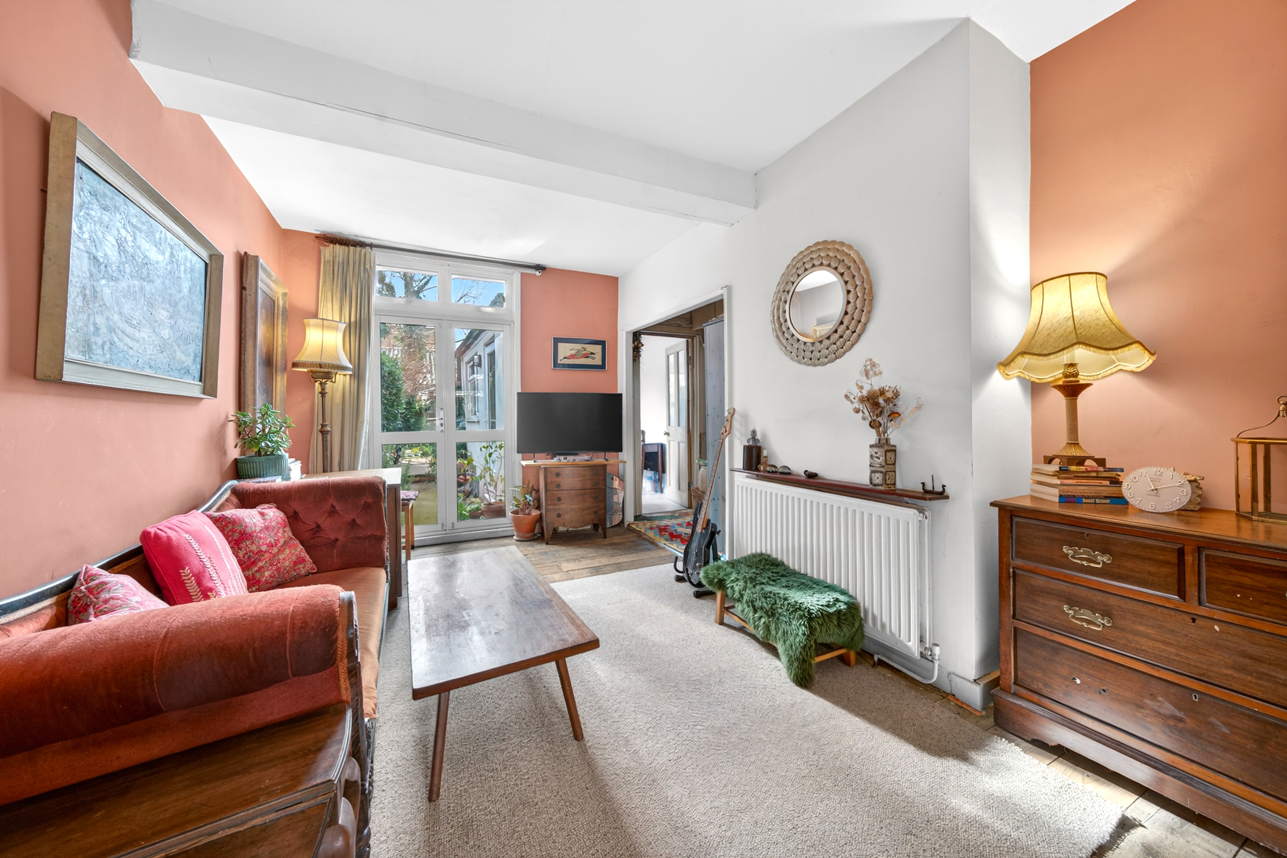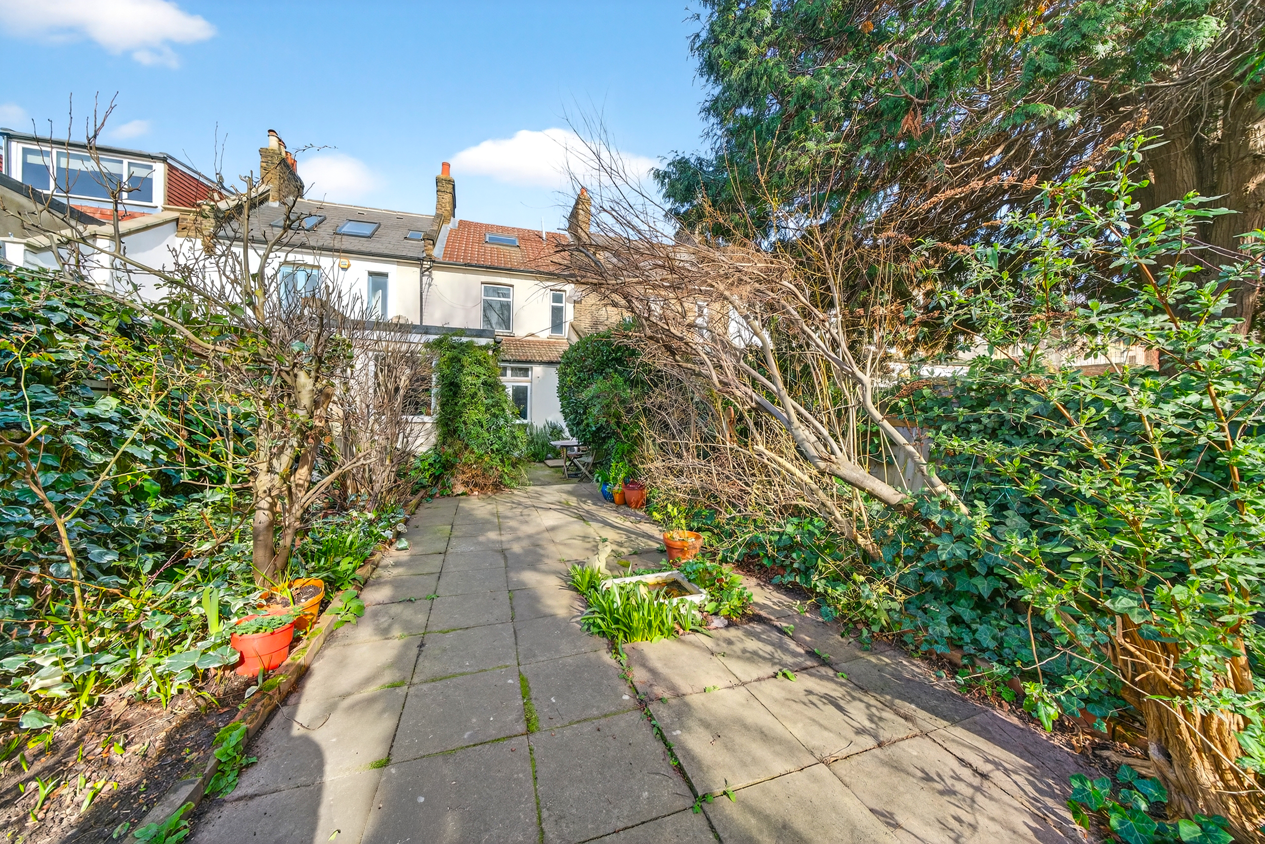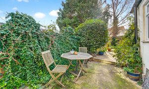To the rear, the garden extends to approximately 60ft and enjoys a desirable south-facing aspect, with mature planting and a paved patio creating an appealing outdoor space.