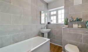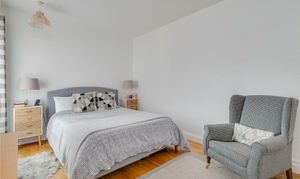 There is a spacious double bedroom with a useful inbuilt storage cupboard, and a stylish bathroom with modern suite and elegant tiling.