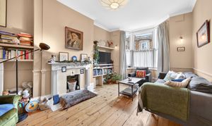 The reception room is bright and welcoming, benefiting from high ceilings, original wooden floorboards, a fireplace and a dado rail, all of which enhance the character and comfort of the space.