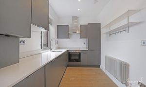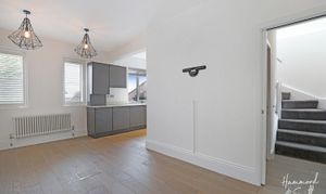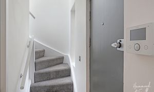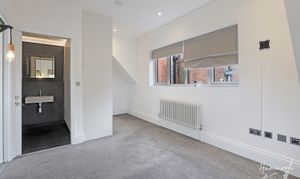 Once home to a former bank, this period conversion has been lovingly transformed. Full of joy and splashes of colour, the first floor houses an open plan kitchen / living space and handy shower room. The dark grey seamless kitchen provides a beautifully blended backdrop to an impeccable living space that’s perfect for cooking, dining and entertaining, or just to simply relax. A skylit stairwell leads upstairs to two double bedrooms. The primary bedroom includes its own dressing area - complete with fitted wardrobes - and an oh-so-chic monochrome ensuite bathroom.