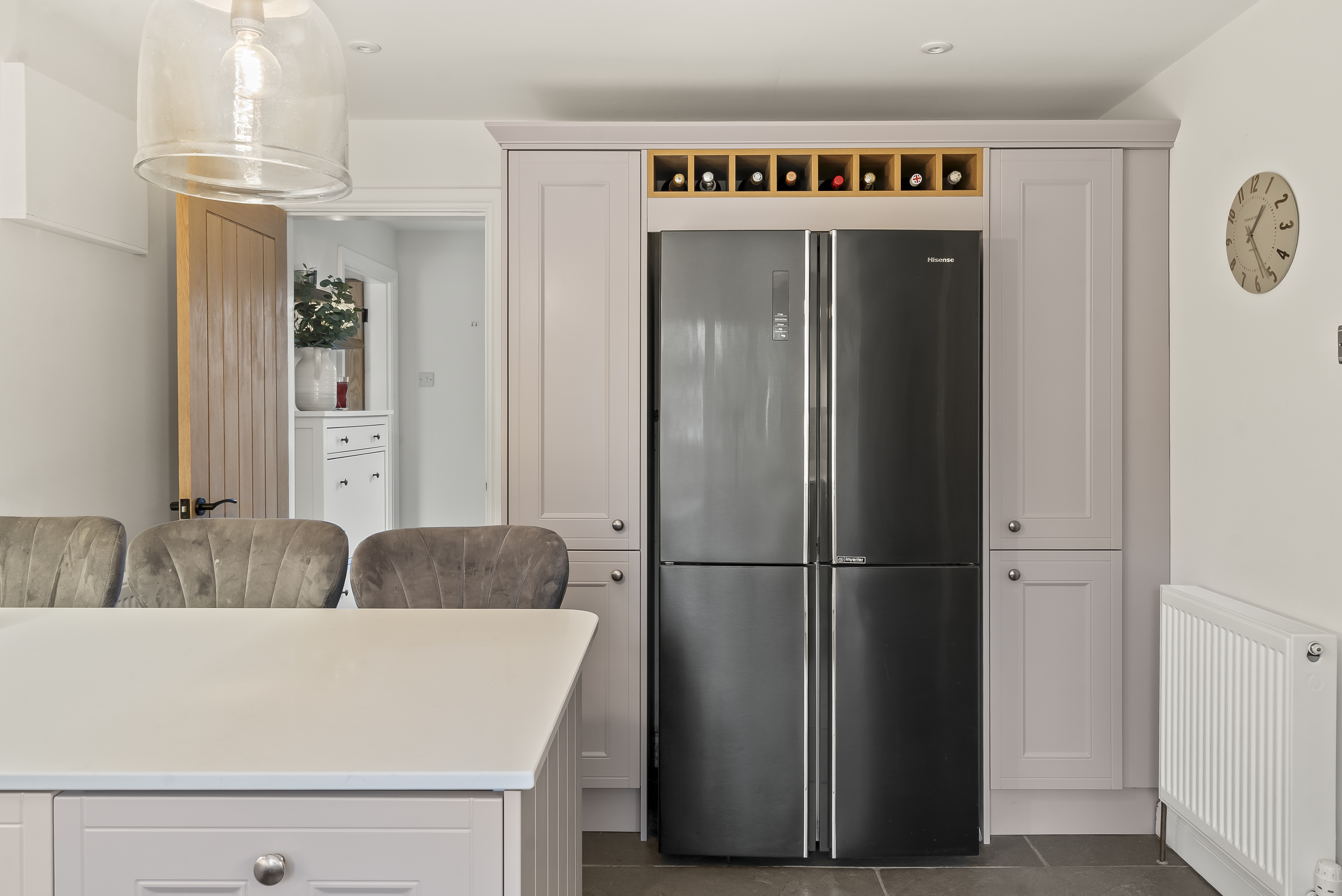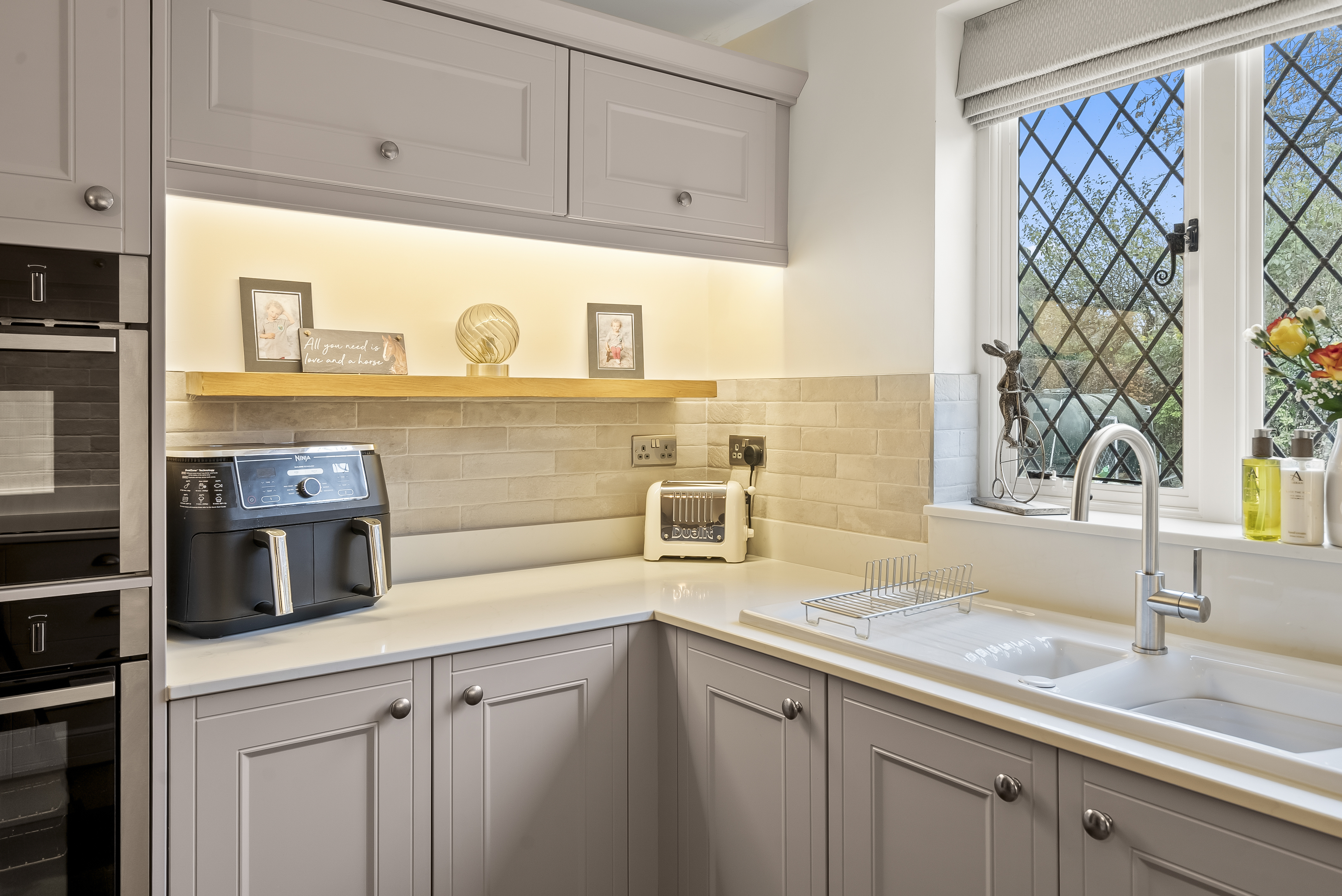 - Delightful country kitchen with ample cupboard storage, spaces for appliances and a breakfast bar