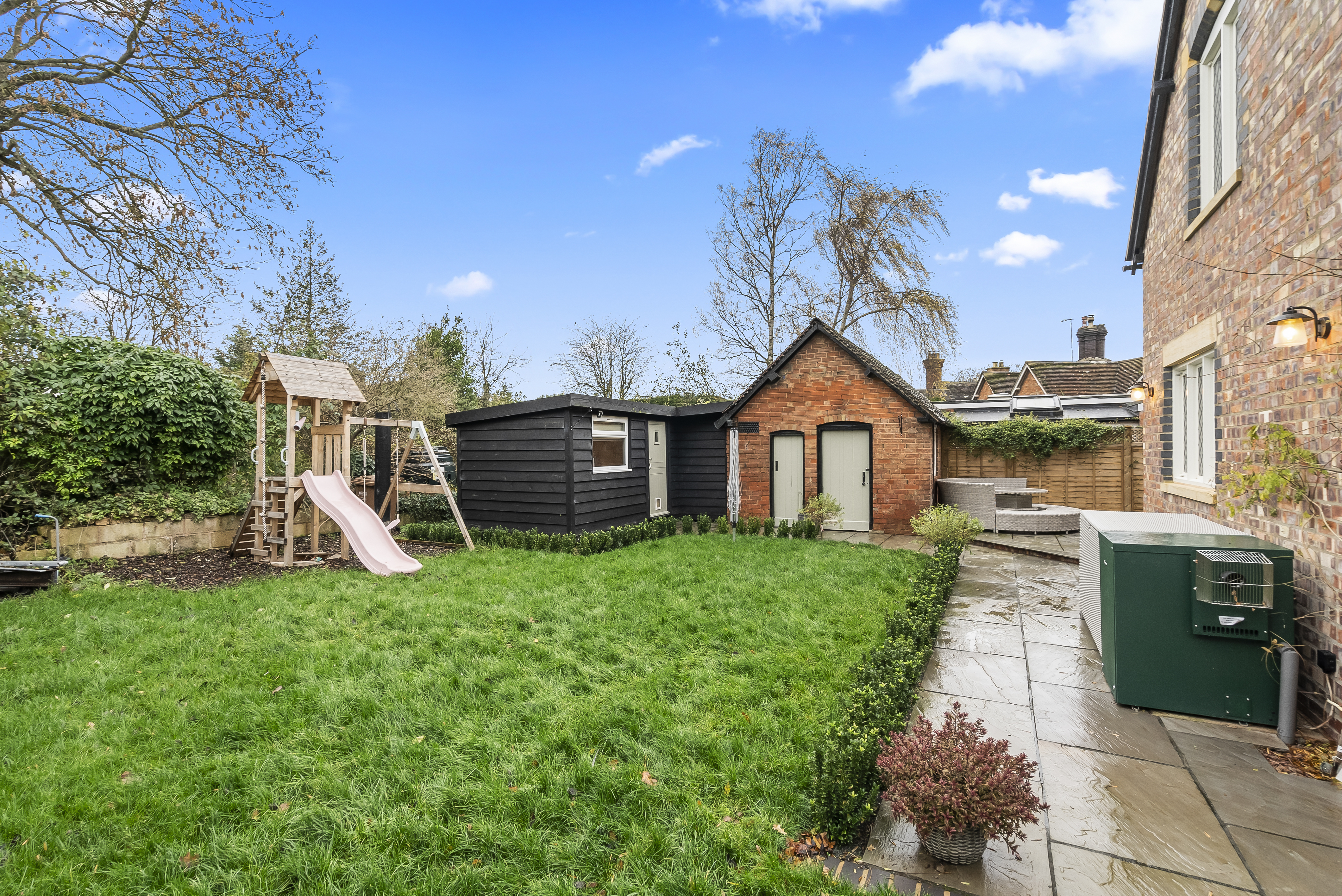 The exterior is equally impressive. The landscaped gardens have been carefully arranged to provide a balance of lawned areas and paved seating terraces, perfect for outdoor dining, relaxation, or simply enjoying the peaceful village surroundings. Additional versatility is offered through an outhouse store and a garden room/ home office, making it easy to accommodate hobbies, remote working, or practical storage needs.