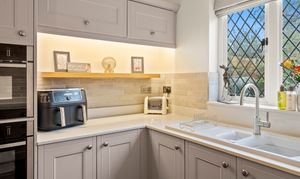 Beyond its charming façade, the property opens into elegantly presented accommodation, including two welcoming reception rooms, ideal for both everyday living and entertaining, and three comfortable bedrooms. At the heart of the home is a delightful country-style kitchen, thoughtfully designed with ample cupboard storage, dedicated appliance spaces, and a breakfast bar that creates a warm, sociable atmosphere.