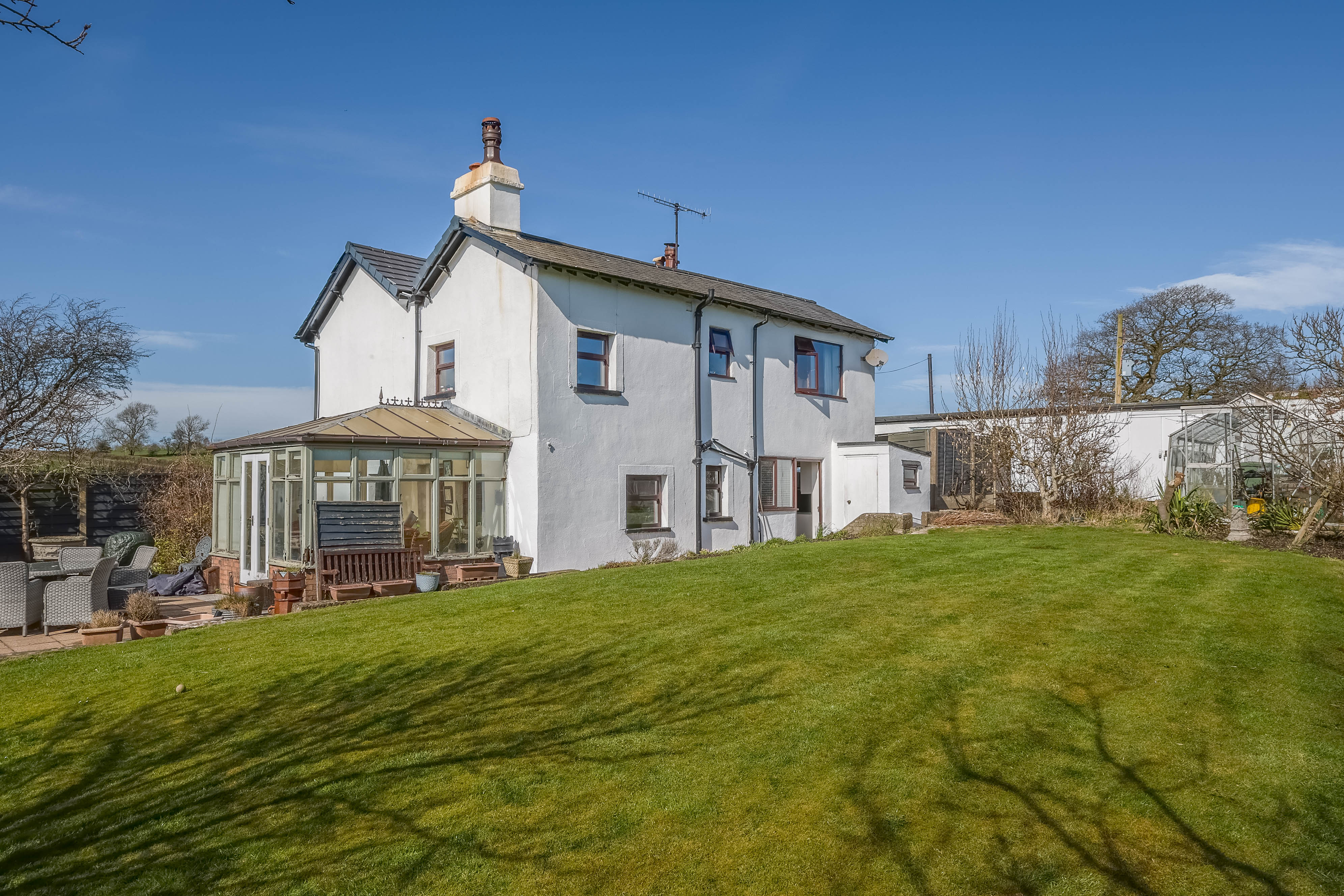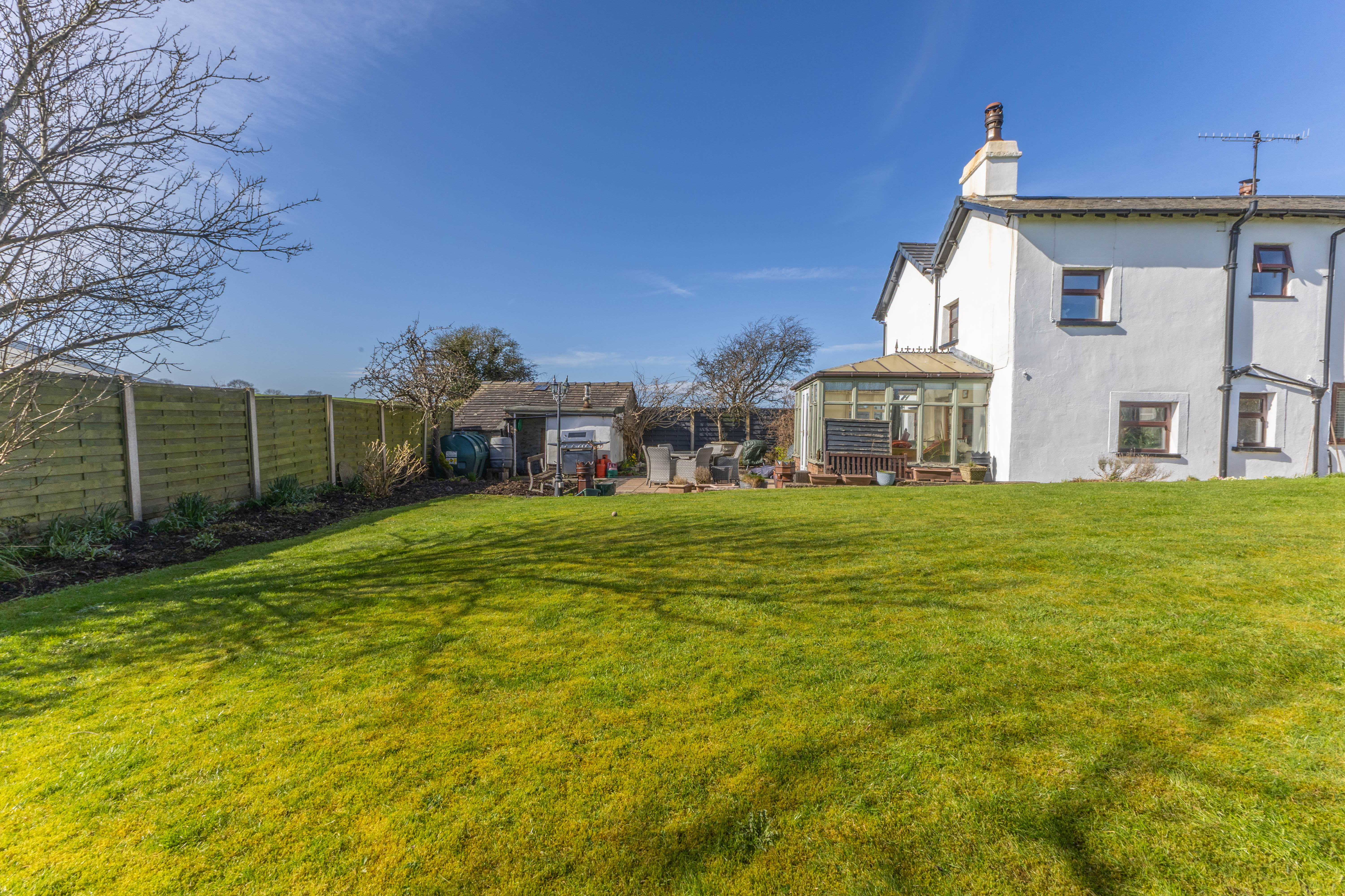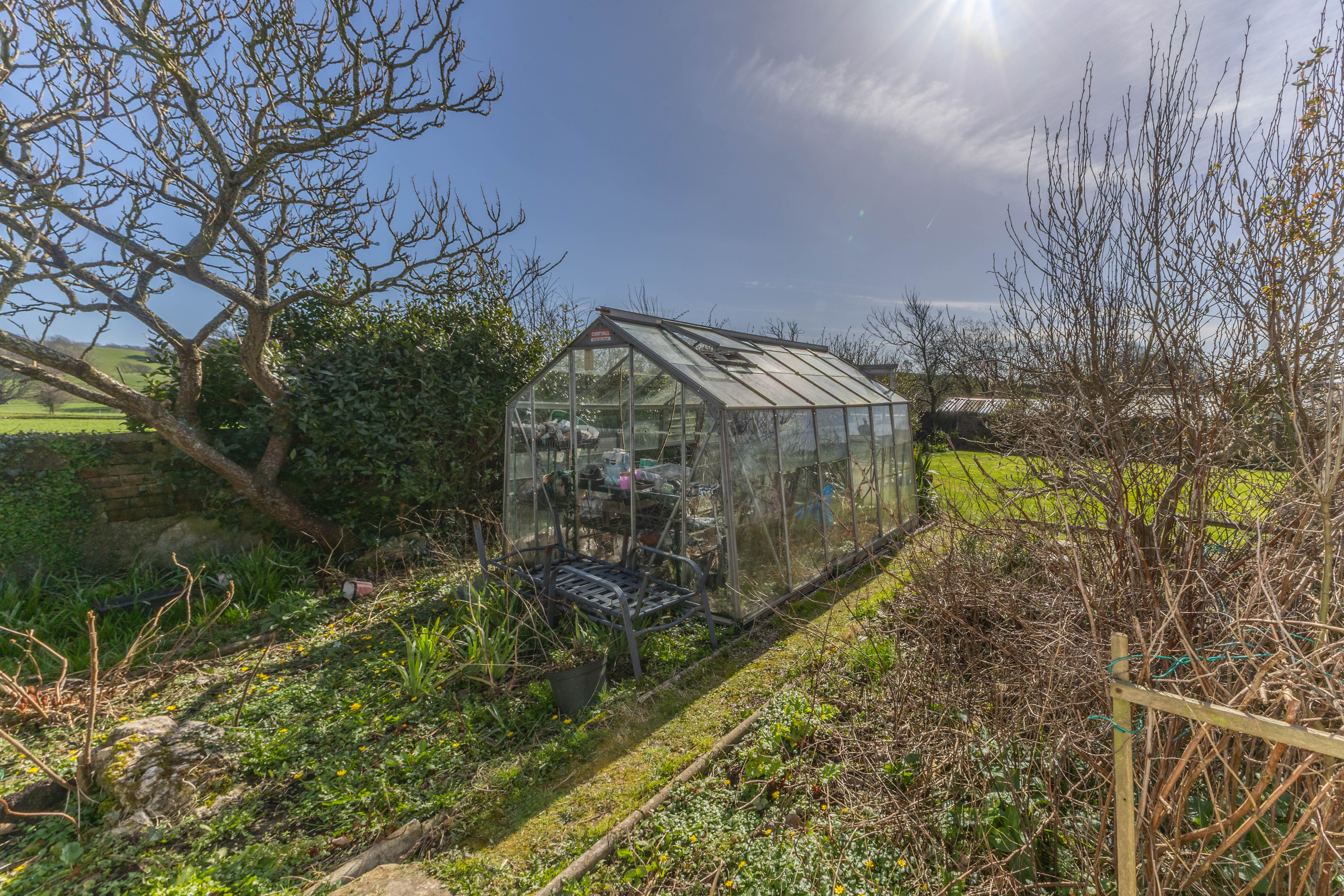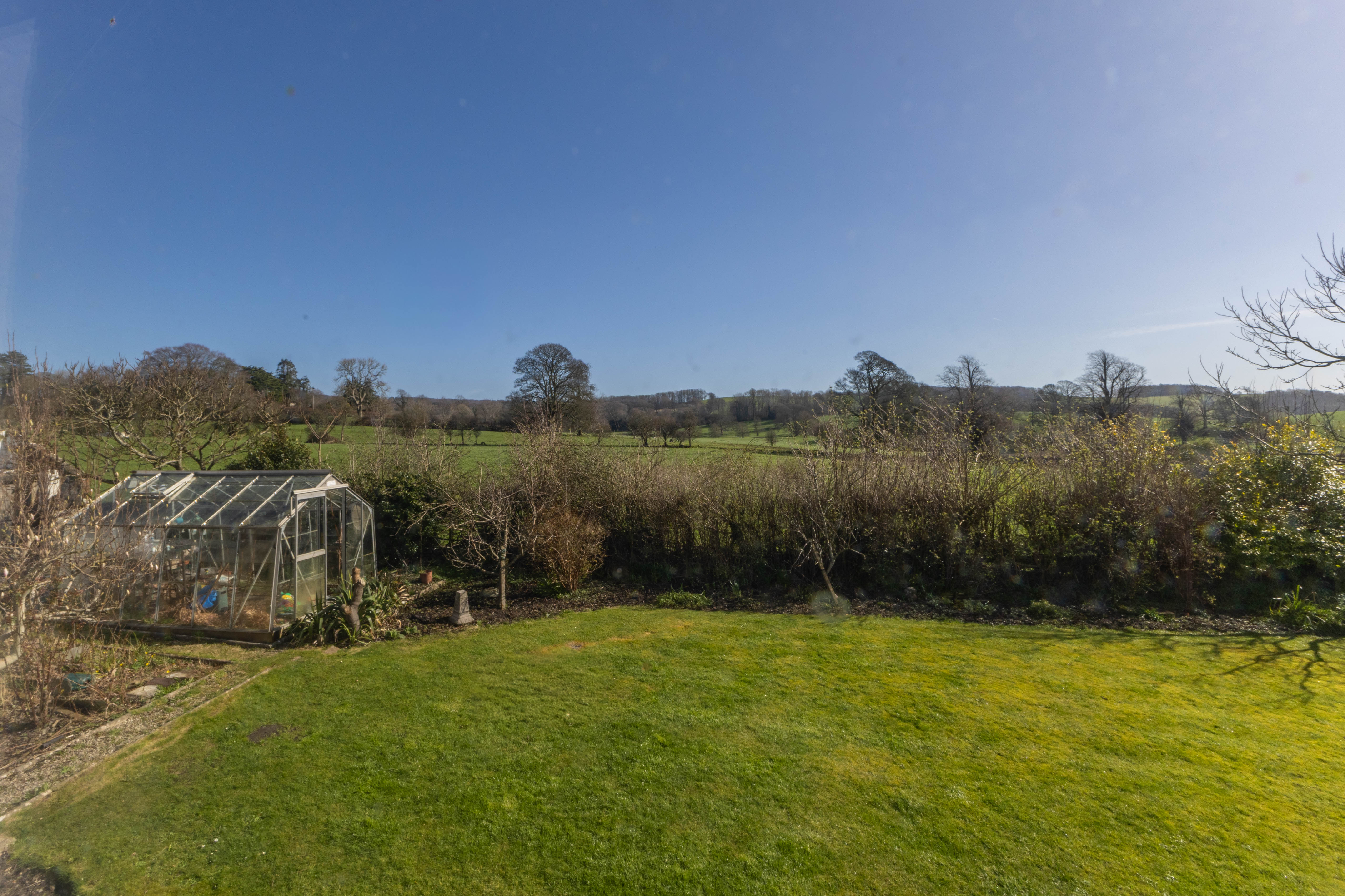 - Expansive lawned garden with established planting, greenhouse and bordering open fields