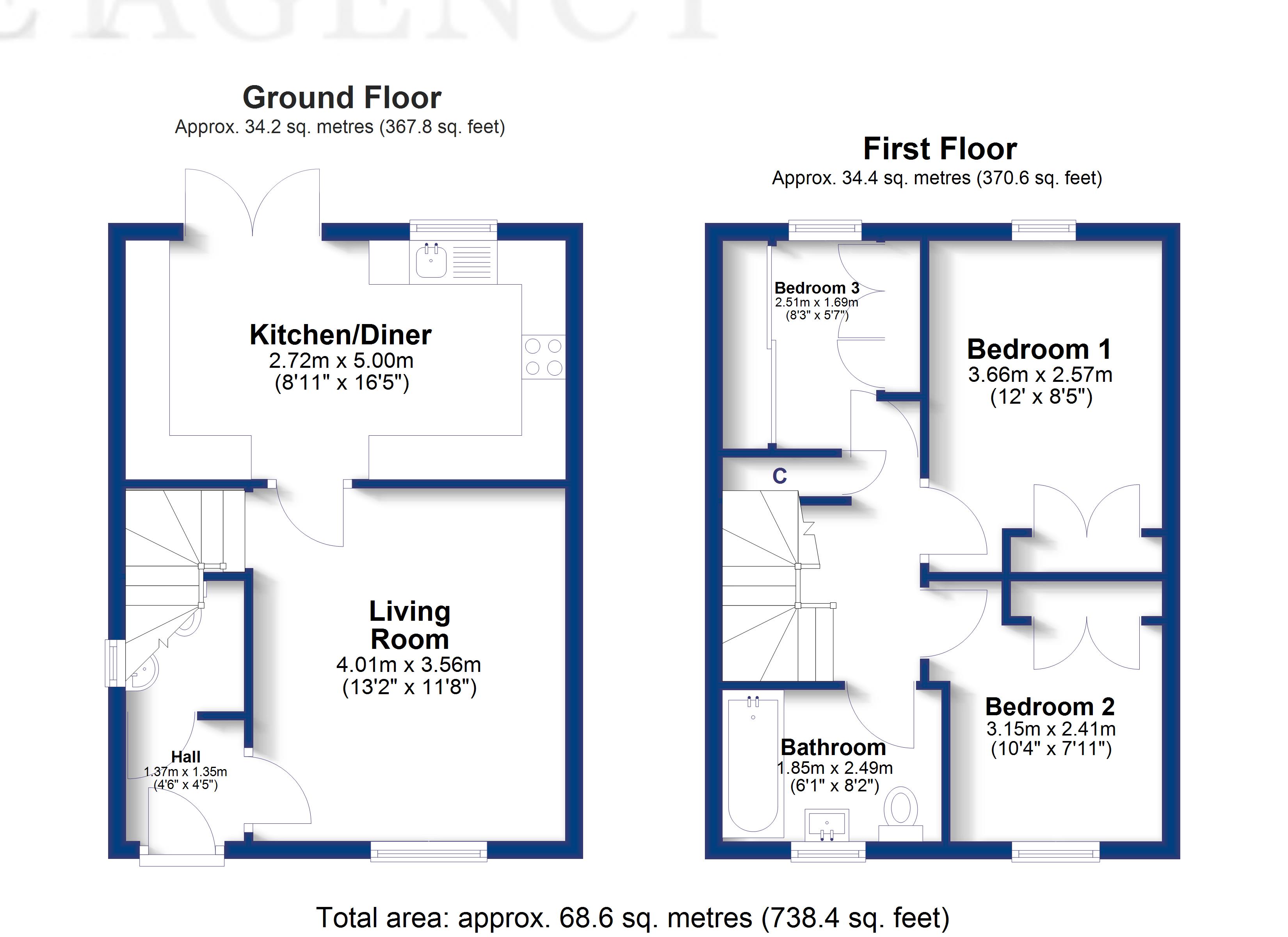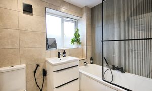 The stairs lead up to the first floor from the living room, where you’ll find 3 good sized bedrooms. Bedroom 1 has recently had a built in wardrobe fitted and is a lovely bright room that sits to the back of the home. Bedroom two and three benefit from fitted wardrobes too, extra storage is always important! The family bathroom has just been re-fitted with black fittings making this a stylish yet practical space.