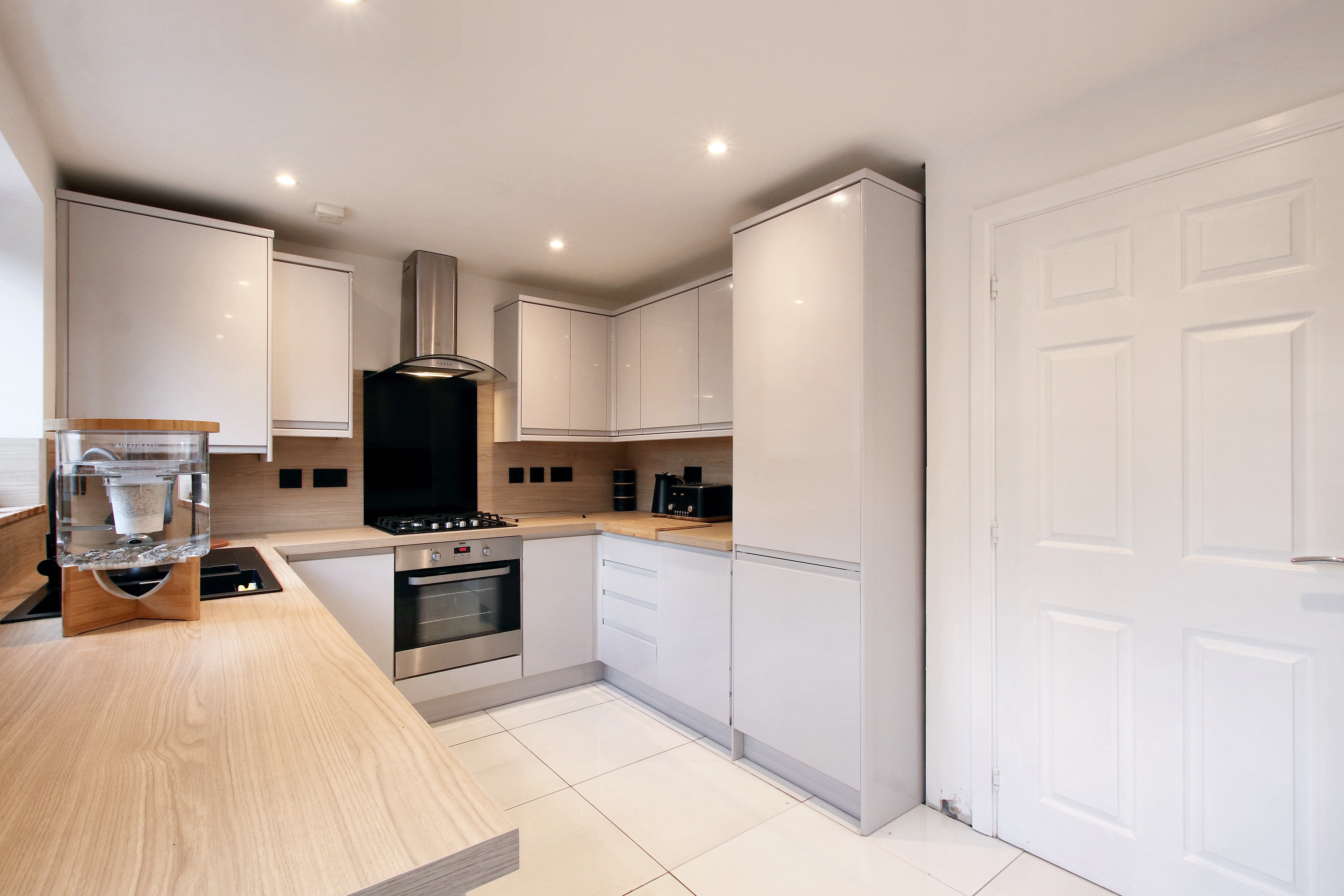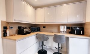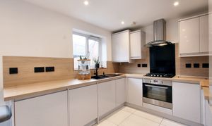 “This well thought out property would make a great choice for a small family. To the front, there are two side by side parking spaces which is a great bonus for a property of this size. Inside, the hallway is a handy space to take off your shoes and leads through into a guest WC and the living room. The living room sits to the front of the house and is a lovely bright space. The brand new kitchen diner has been opened up and refitted with sleek grey units and fully integrated appliances. The underfloor heating is a great addition in here, meaning you have the benefit of hard flooring whilst feeling warm underfoot. Located at the rear with double doors out to the garden, this really is a lovely space.