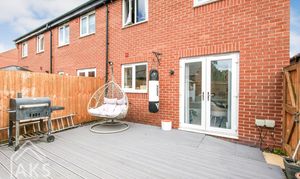 Outside, the useful details continue! The shed benefits from power where the current owners store a freezer, really handy if you need that facility for the family! The garden itself is fully decked and really low maintenance, so useful if you’re short on time or not particularly green fingered! But equally, some planters or pots would look lovely out here! What a lovely home for a family in a convenient area”